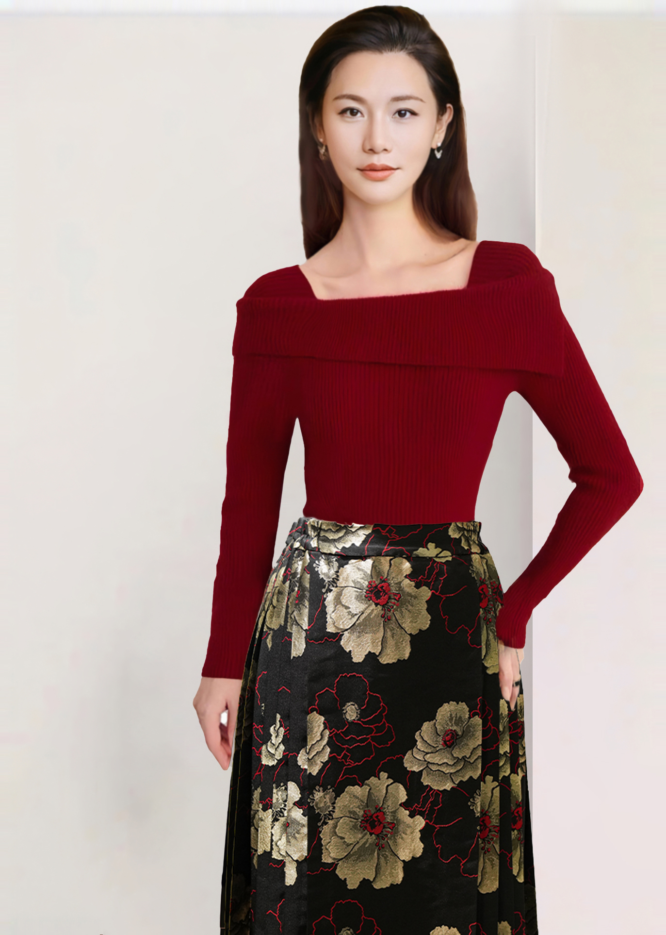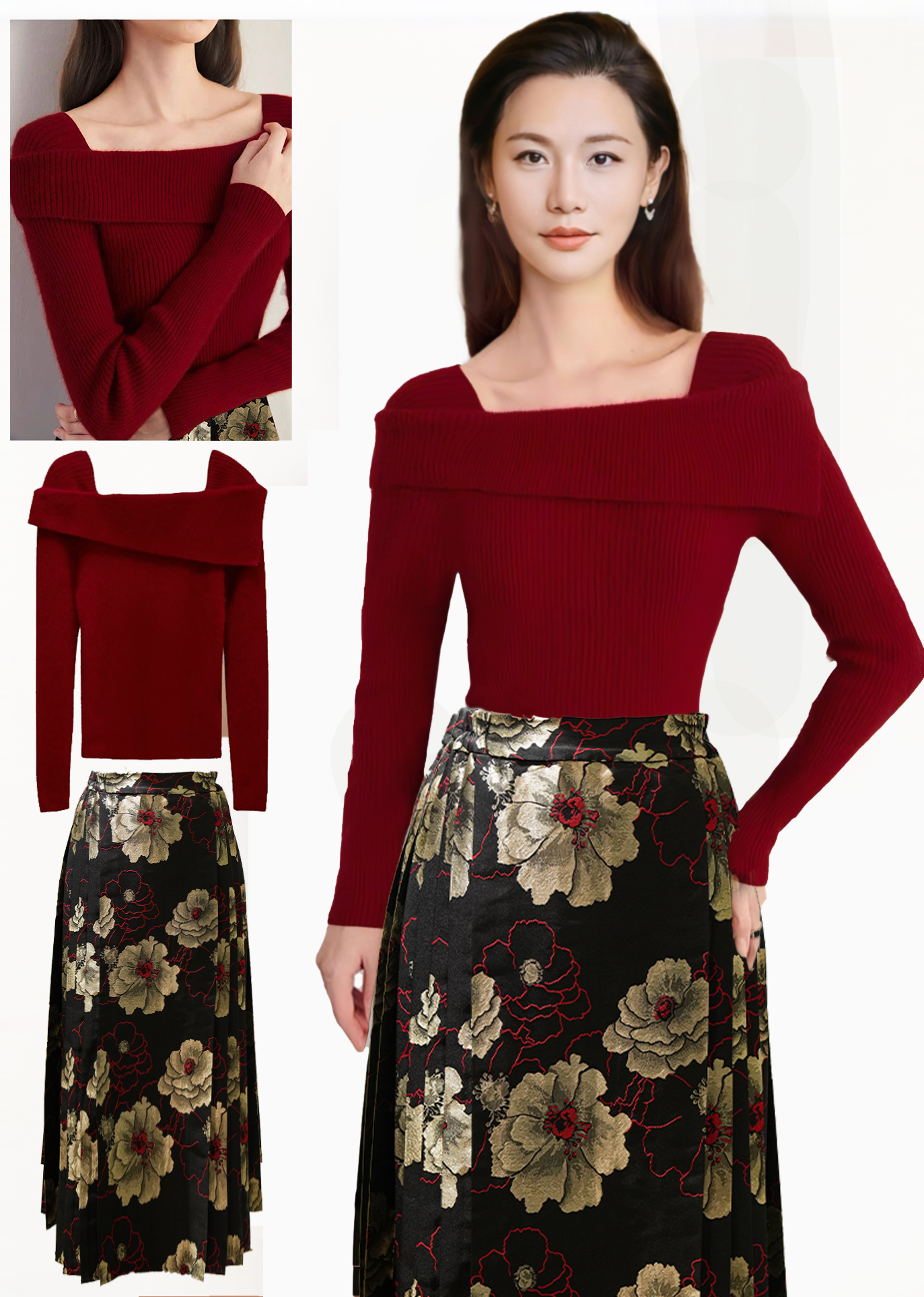可以像明月一样搭配马面裙,也可以搭配裤装裙装... 除了过年穿,平日穿也特别适合,很有气质的意见小毛衣~~