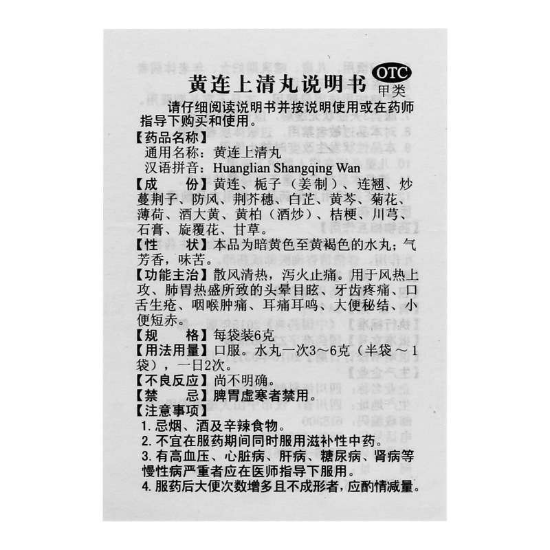 包邮】蜀中 黄连上清丸 6g*10袋/盒头晕目眩牙痛口舌生疮咽喉肿痛