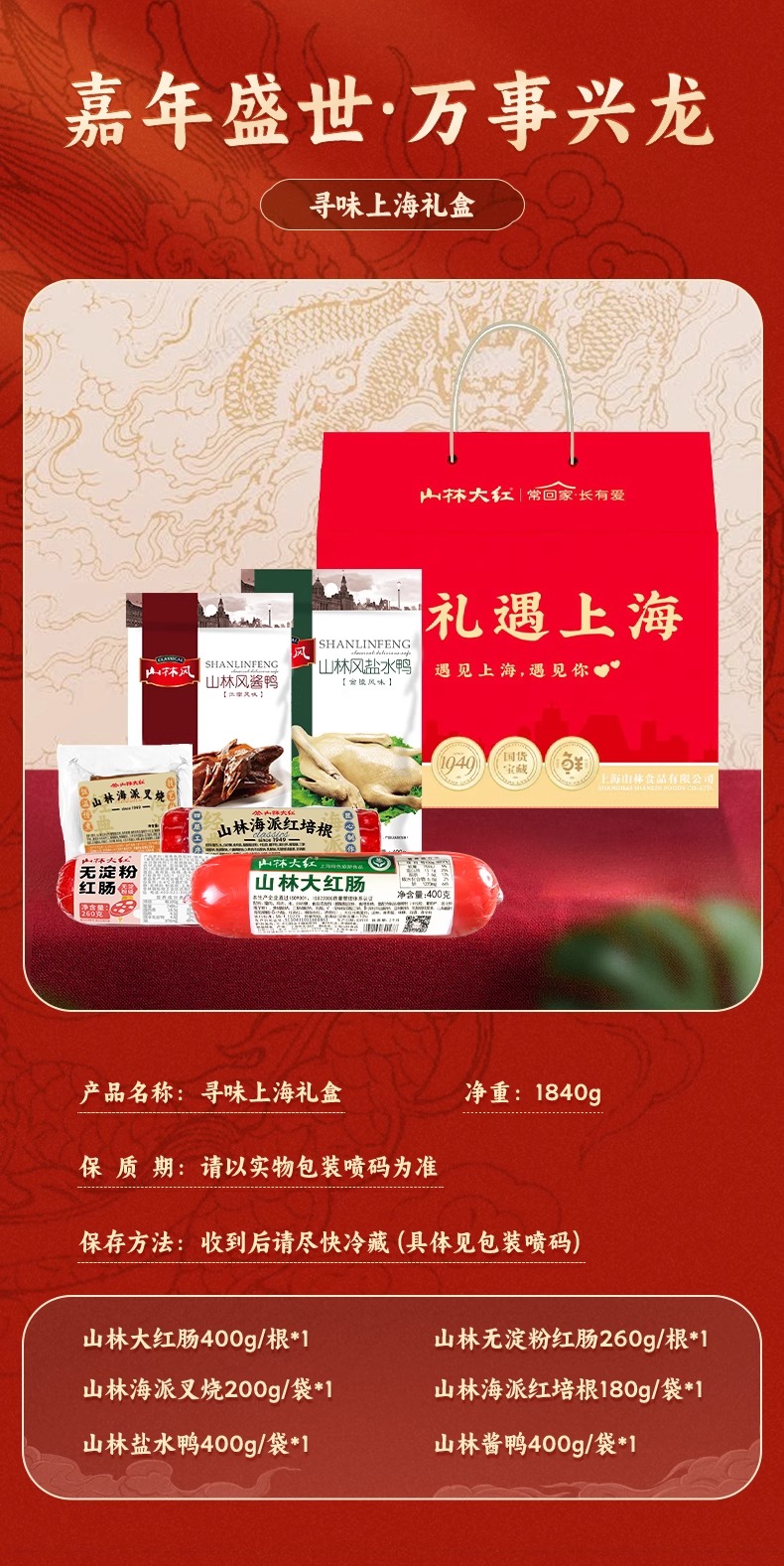 山林大红熟食礼盒送长辈礼品即食大礼包寻味上海礼盒