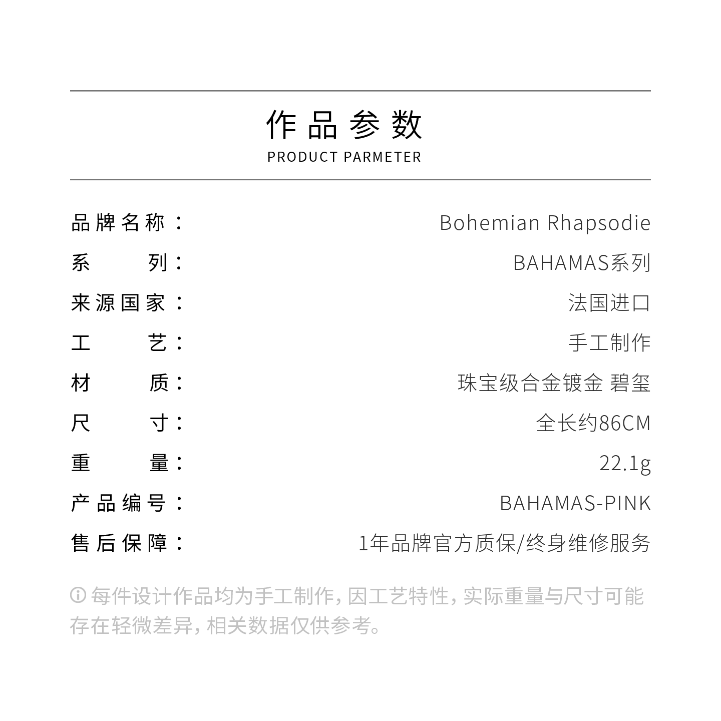 北京仓|Bohemian Rhapsodie-BAHAMAS-粉色 碧玺 项链[法国设计师]