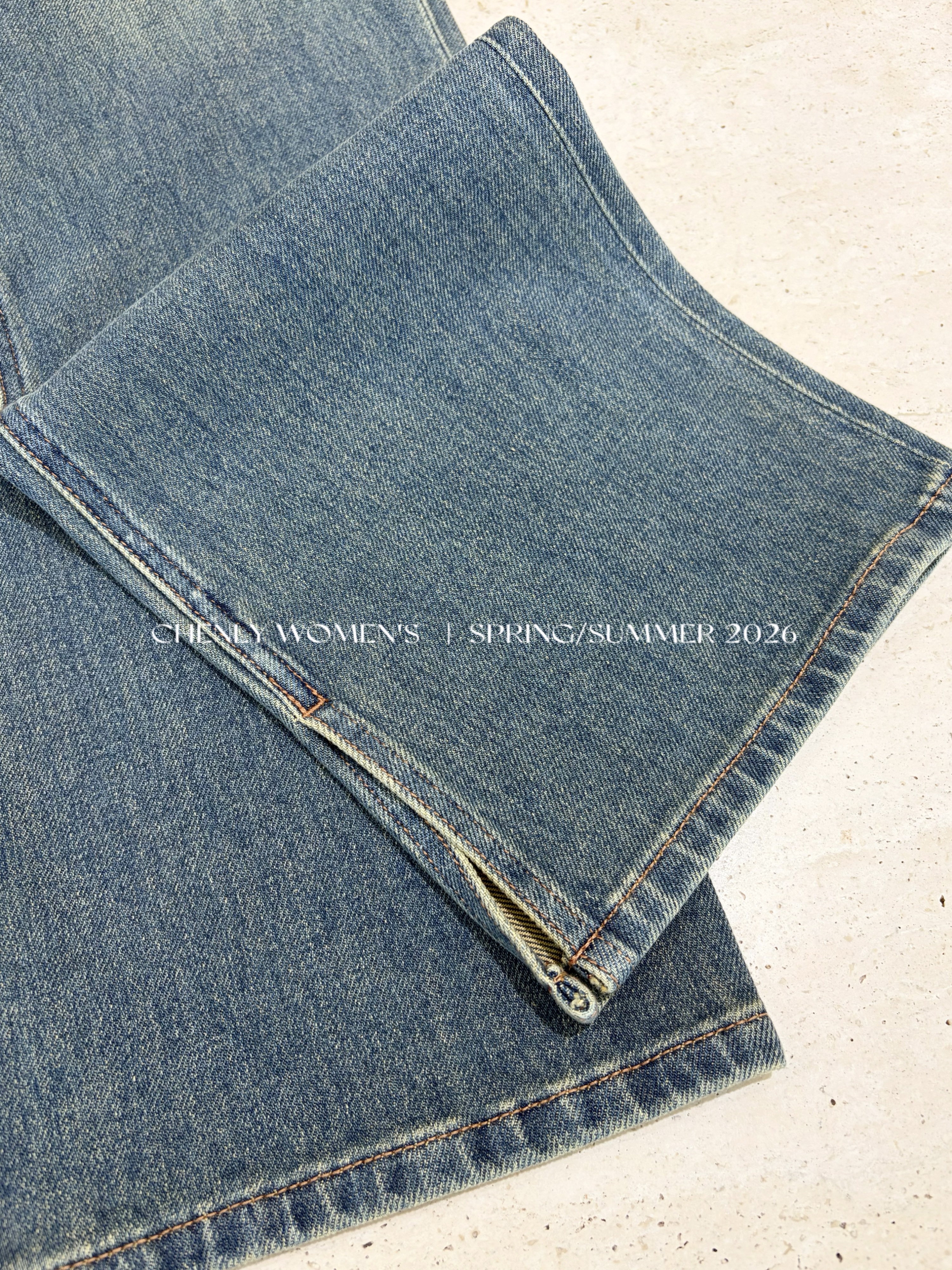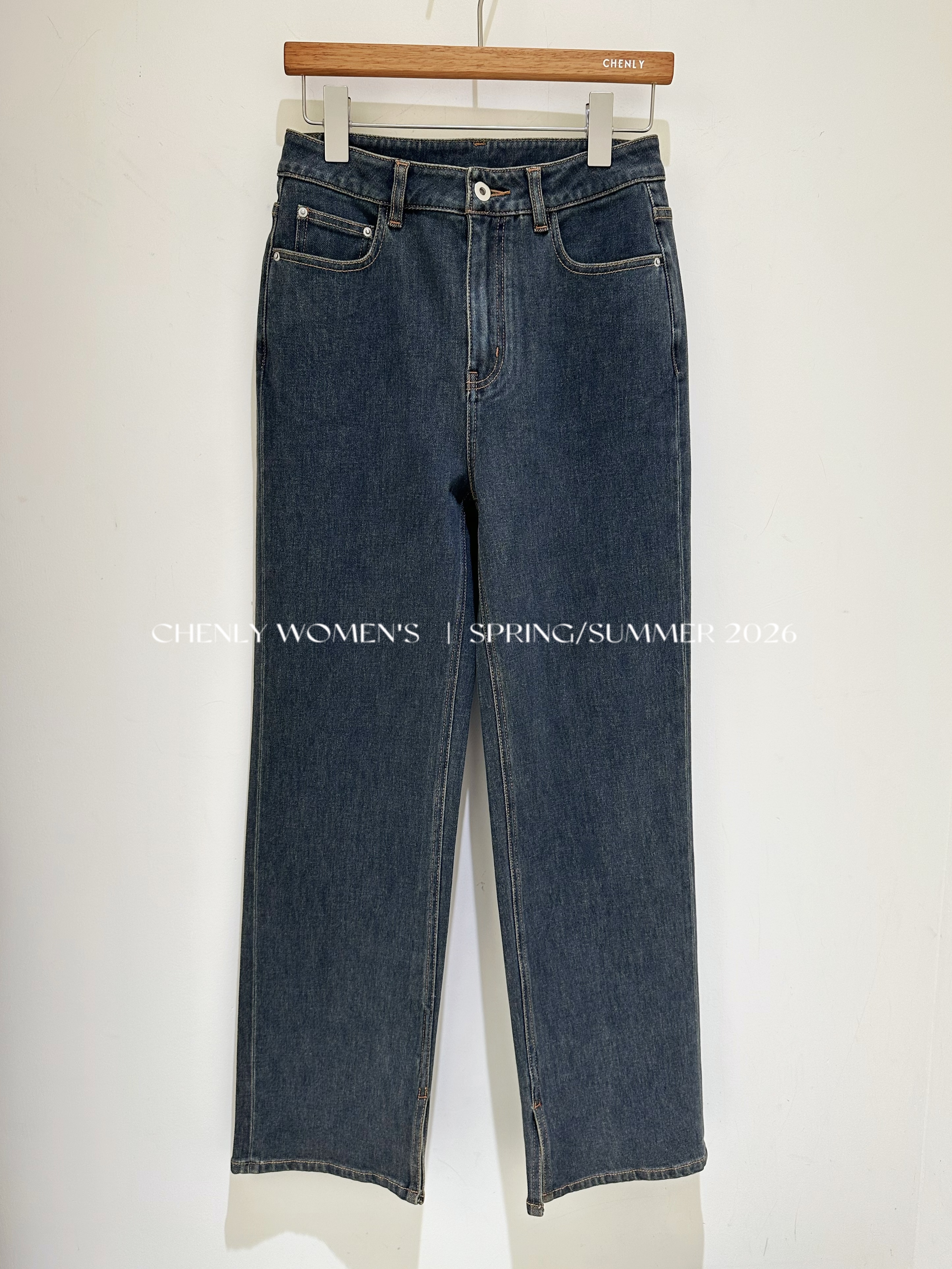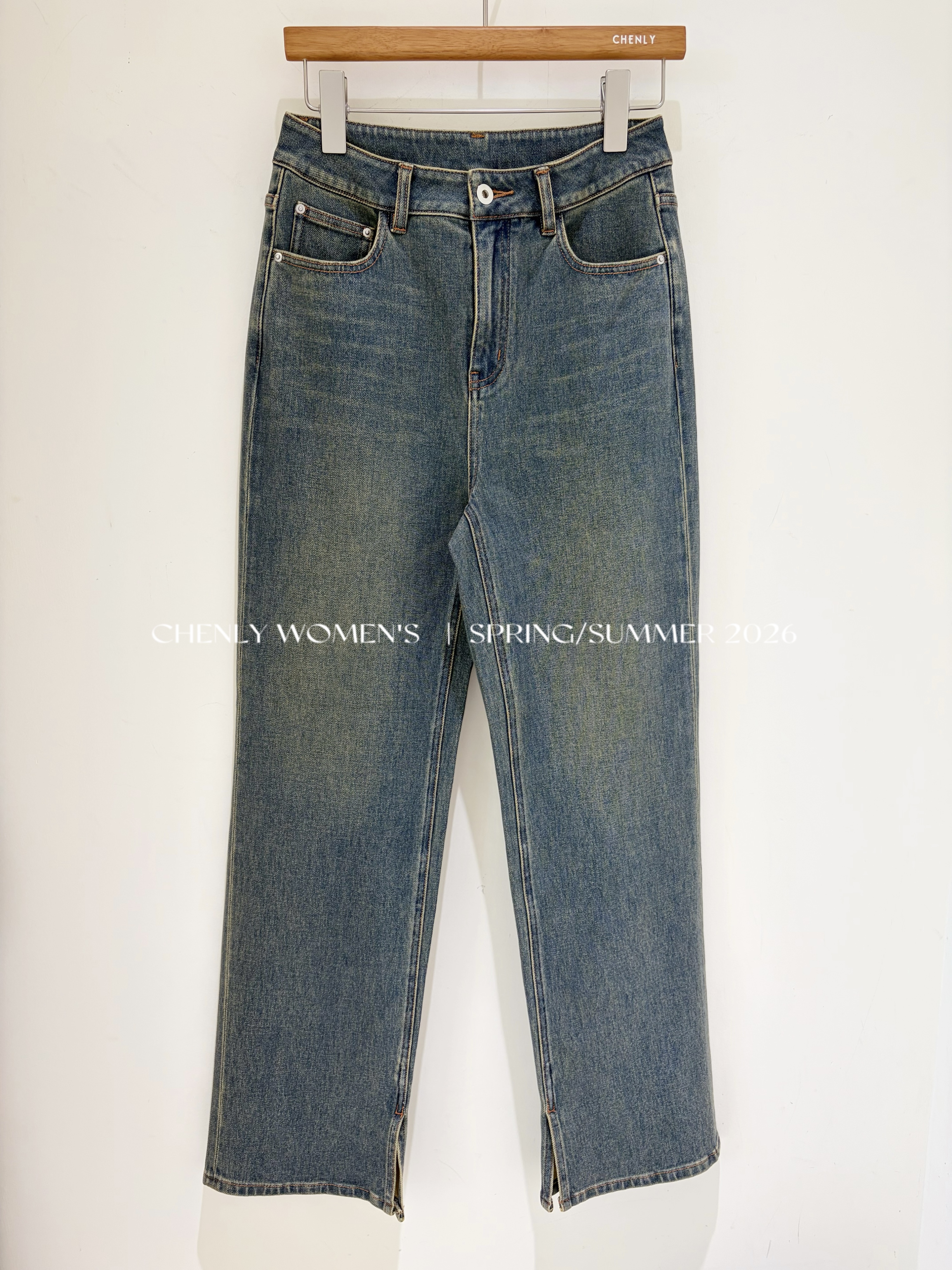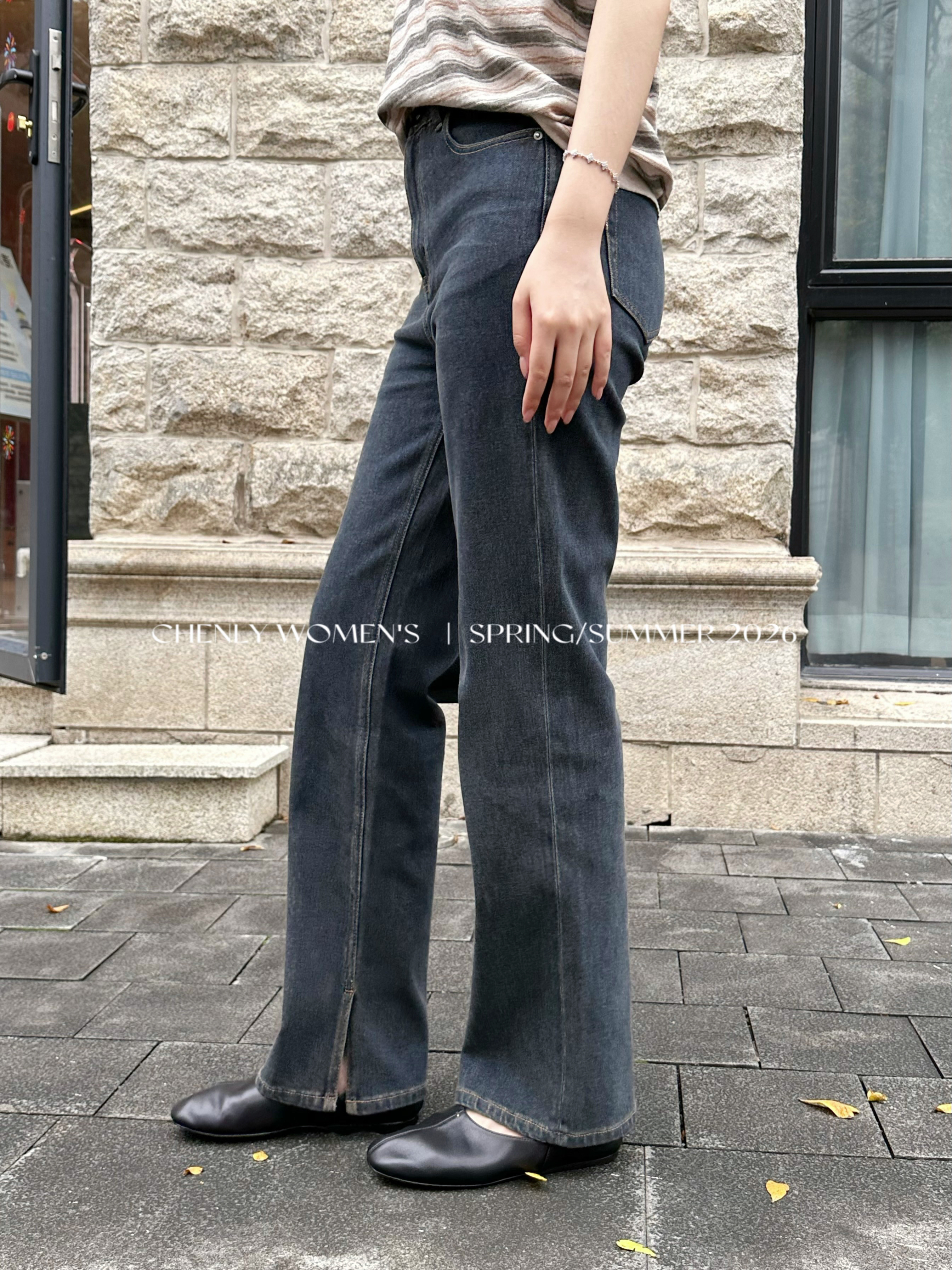 尘衣|26SS中高腰直筒开衩牛仔裤