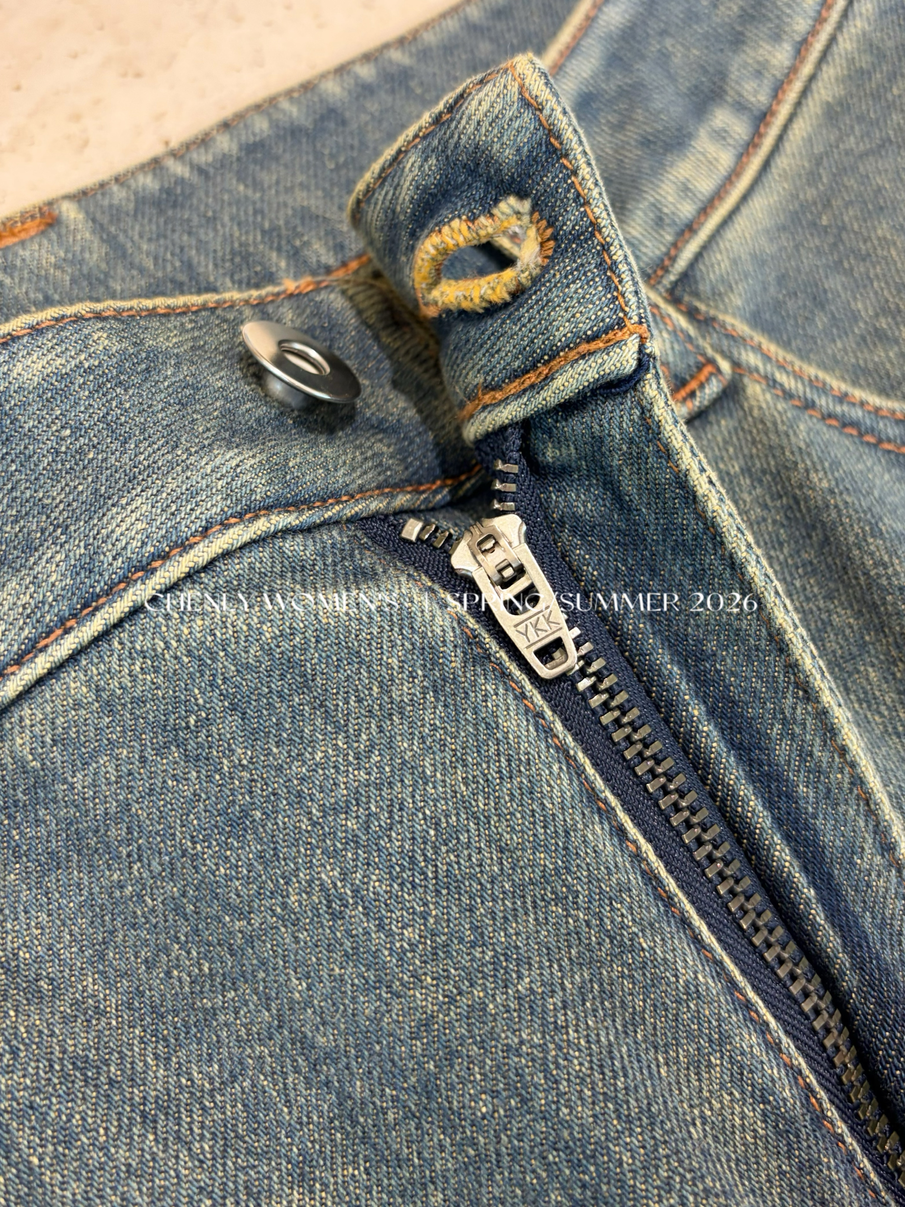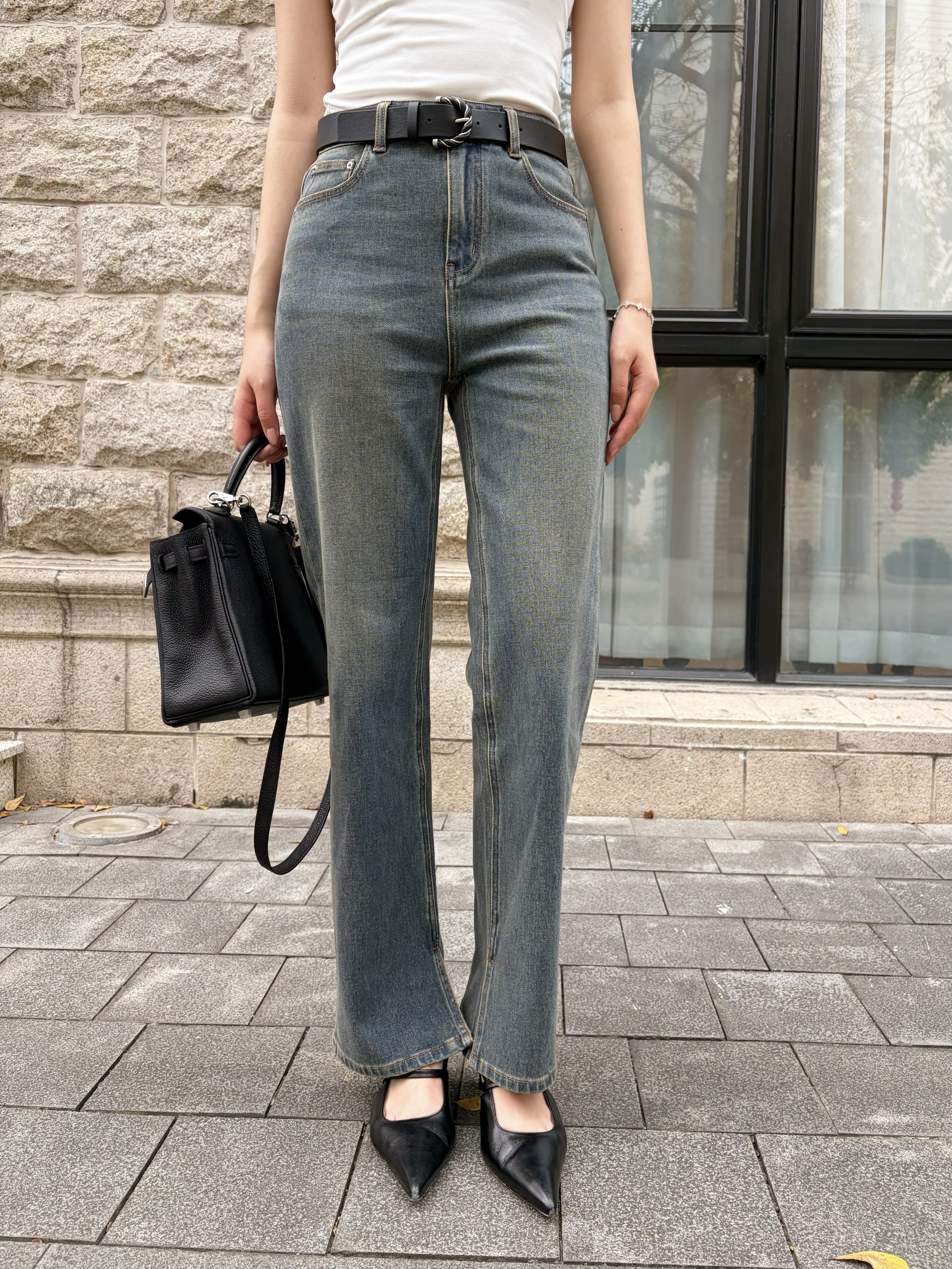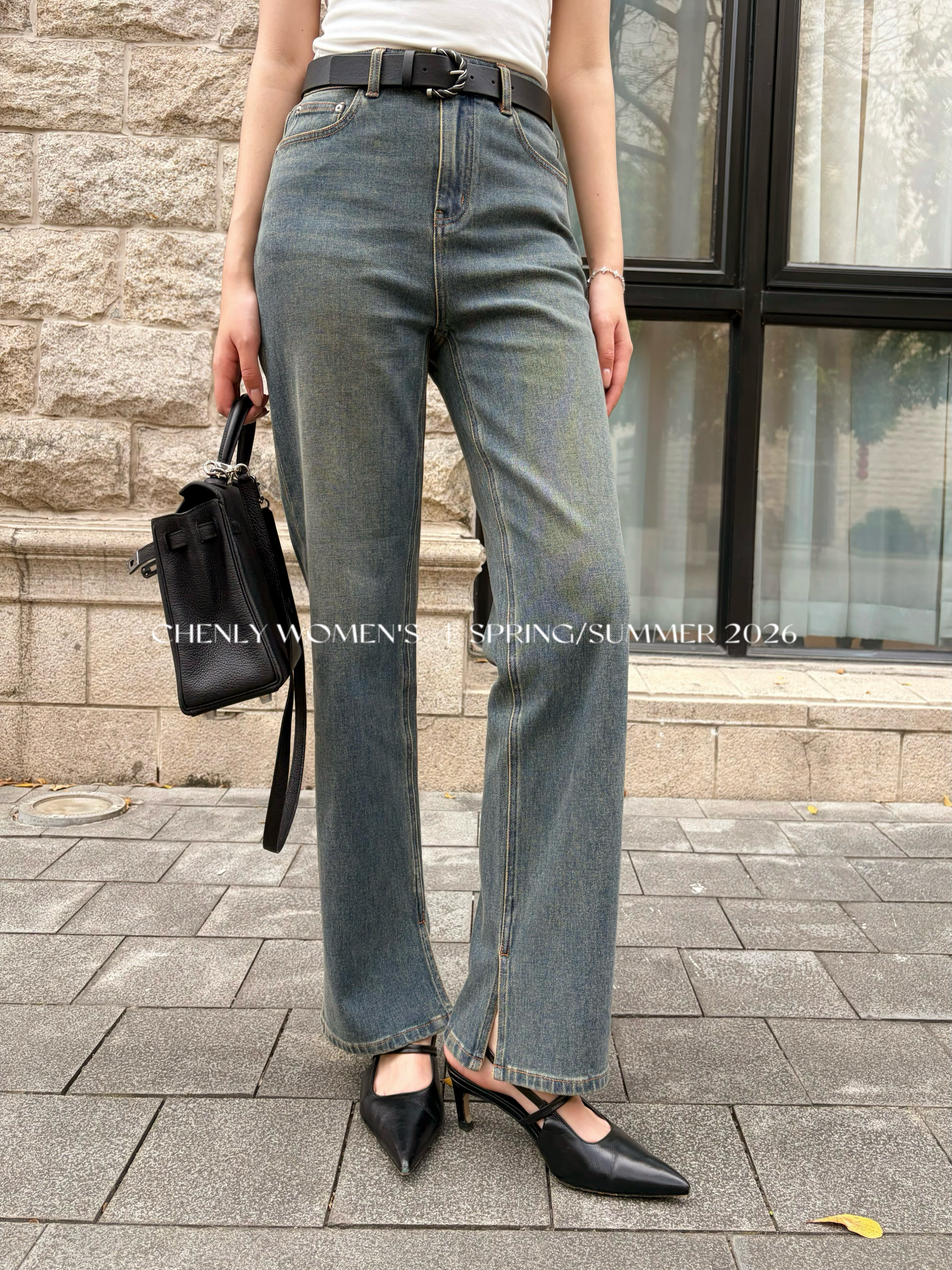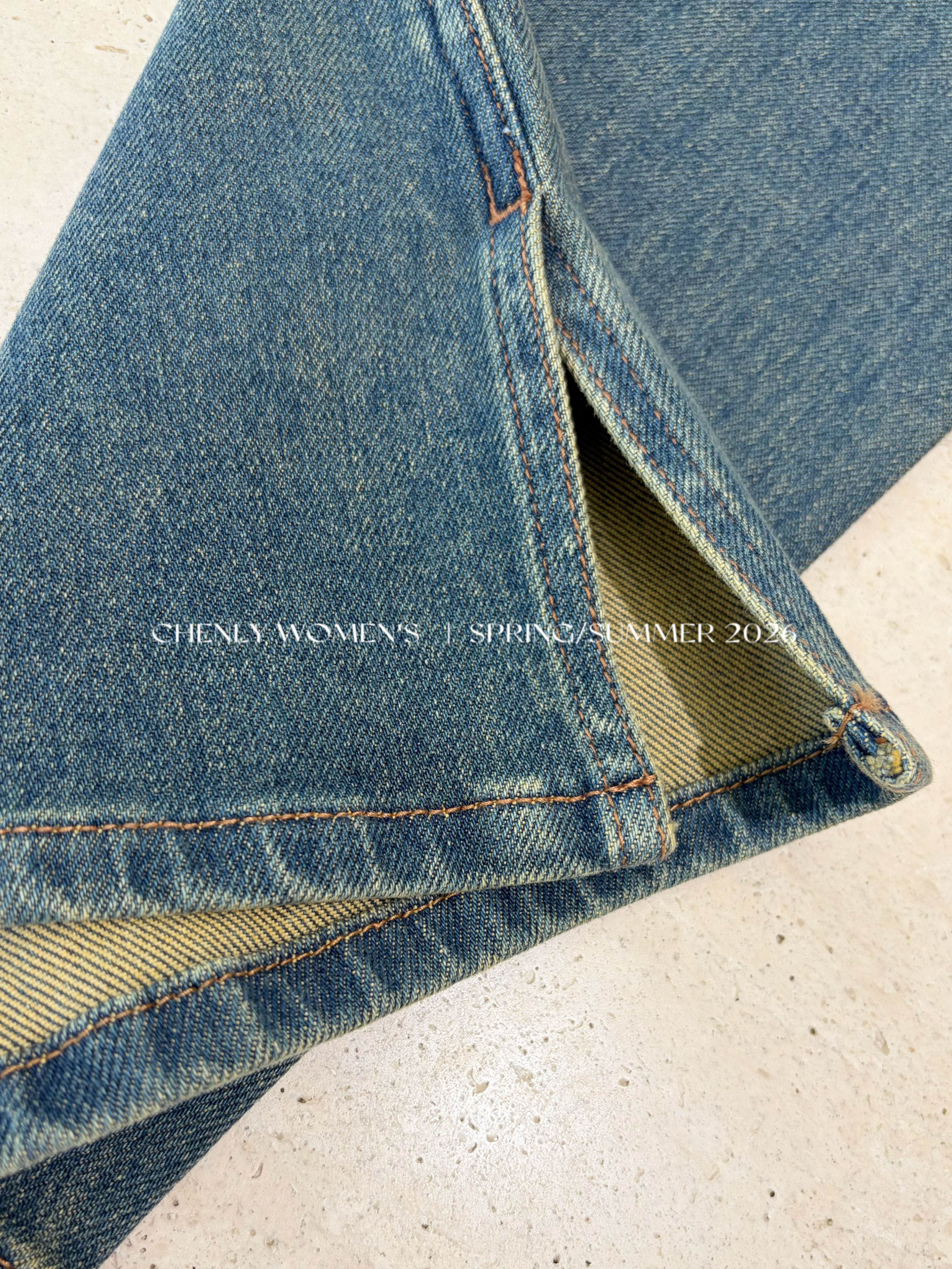 尘衣|26SS中高腰直筒开衩牛仔裤