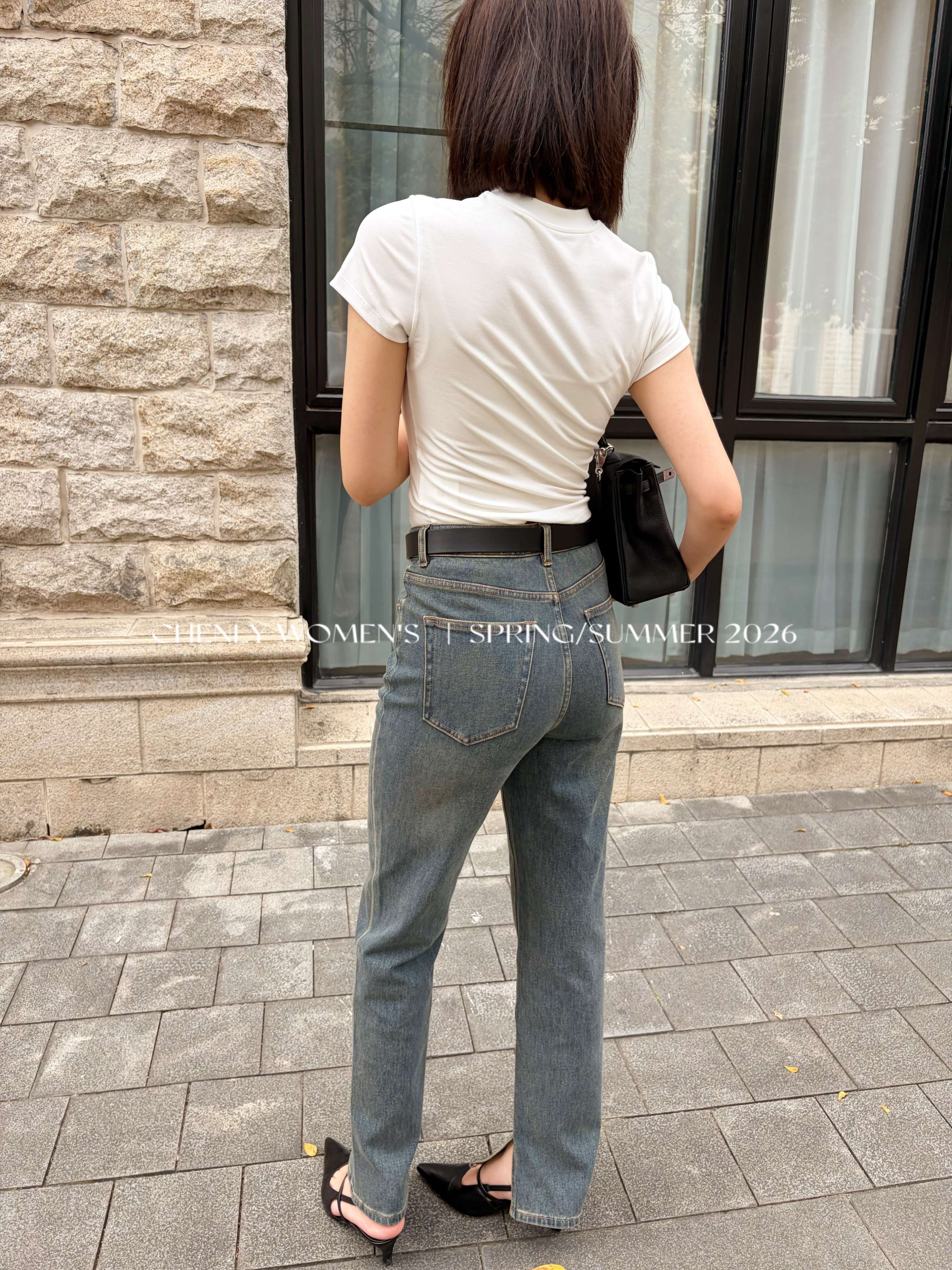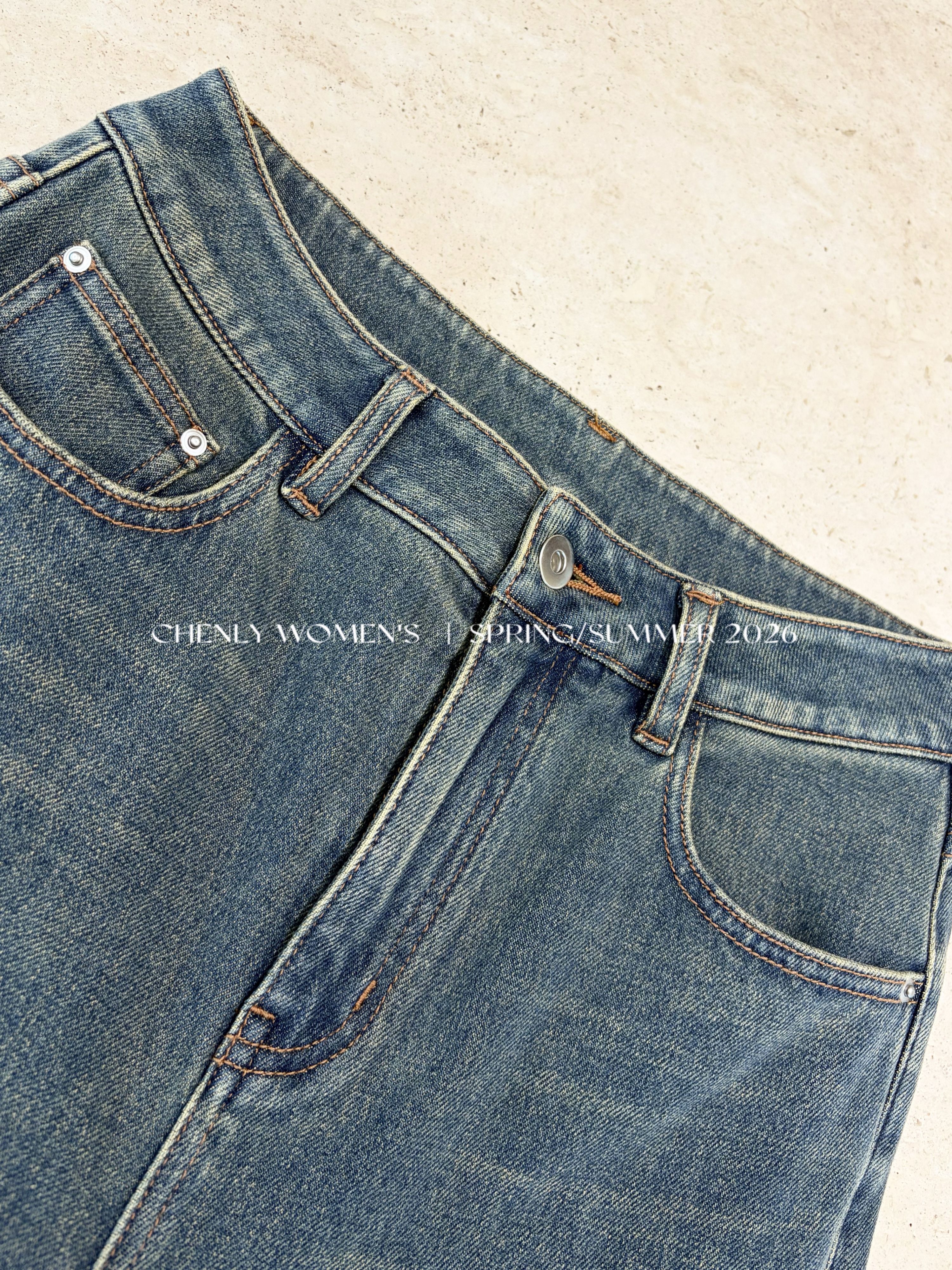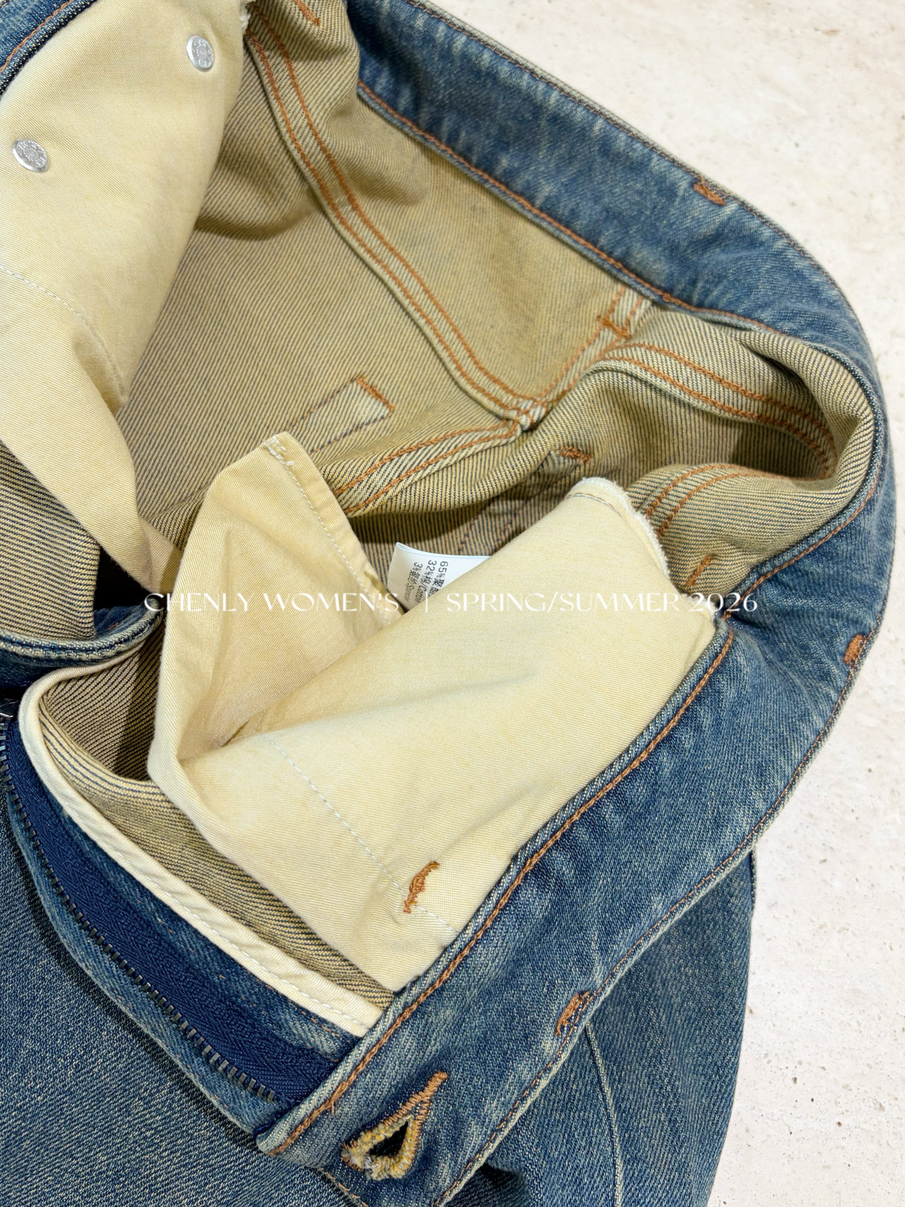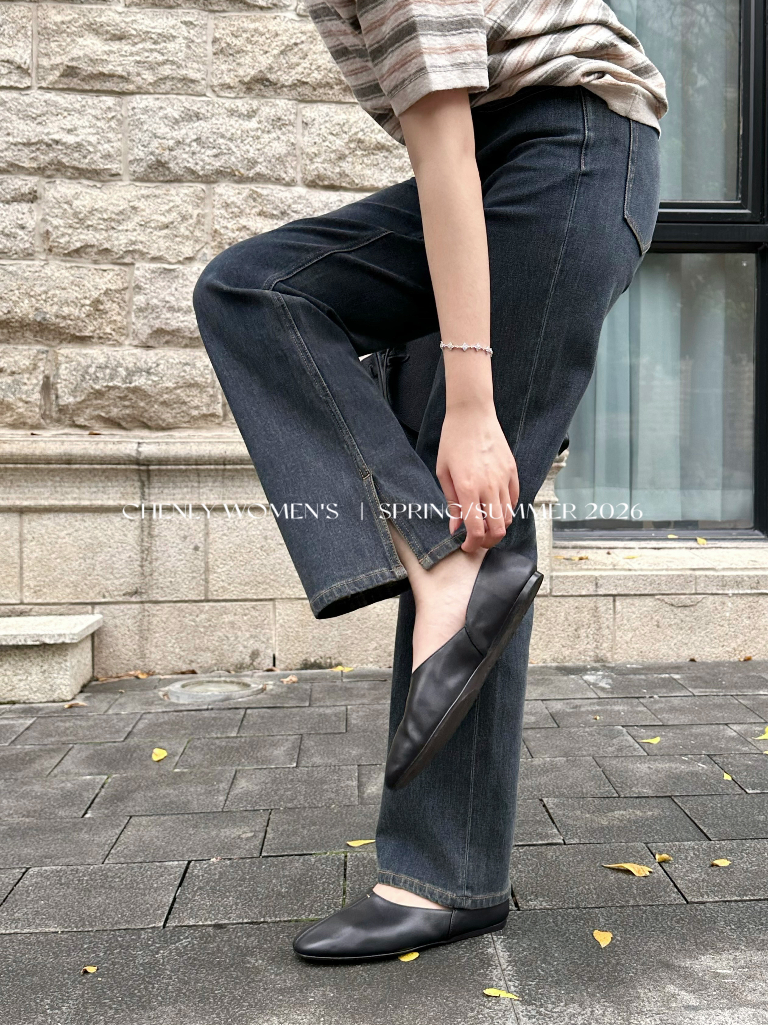 尘衣|26SS中高腰直筒开衩牛仔裤