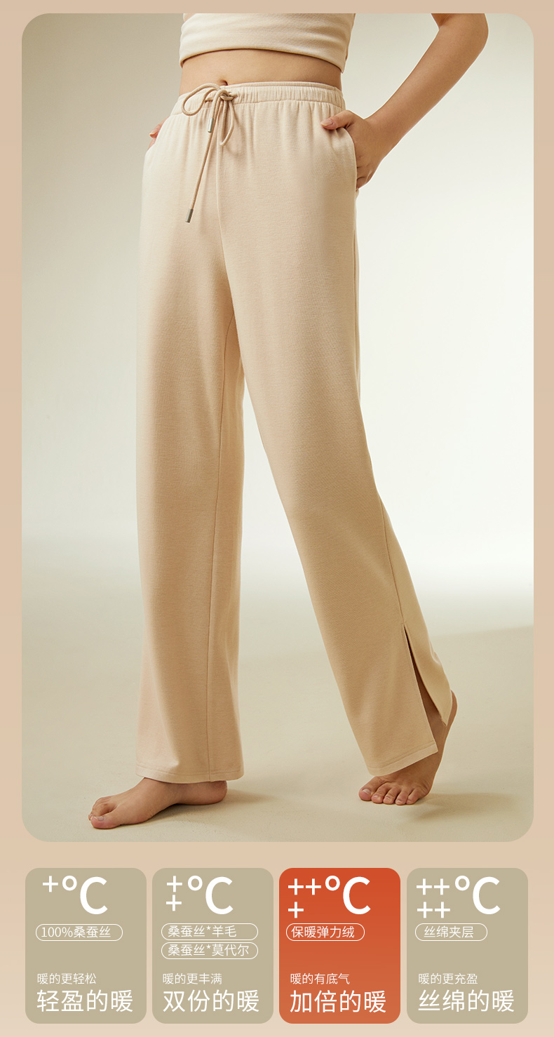 【暖暖家居裤】金三塔桑蚕丝拉绒家居裤女贴肤保暖可外穿秋冬长裤 YZFDD901