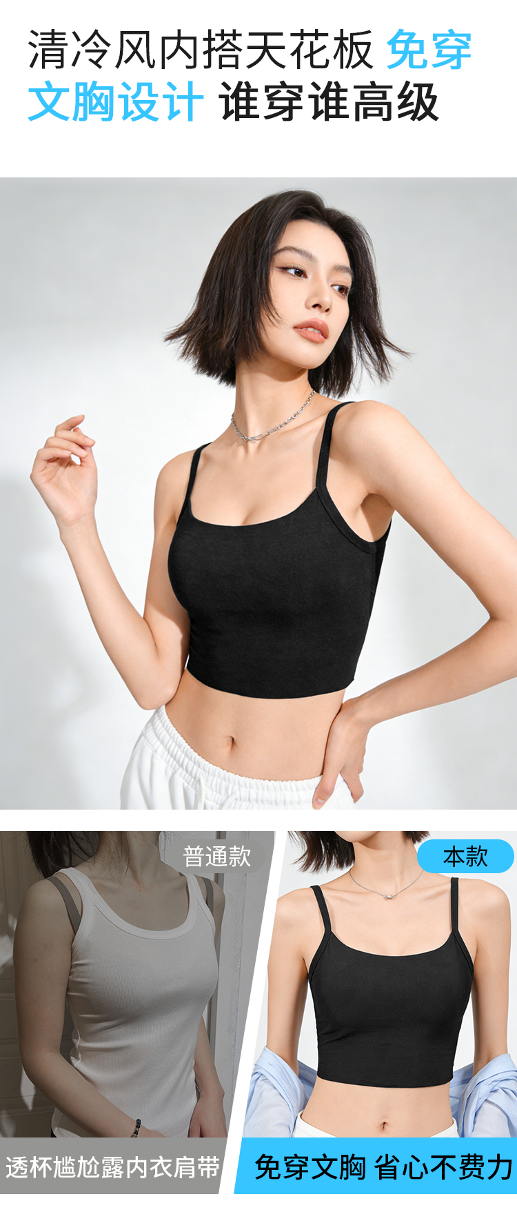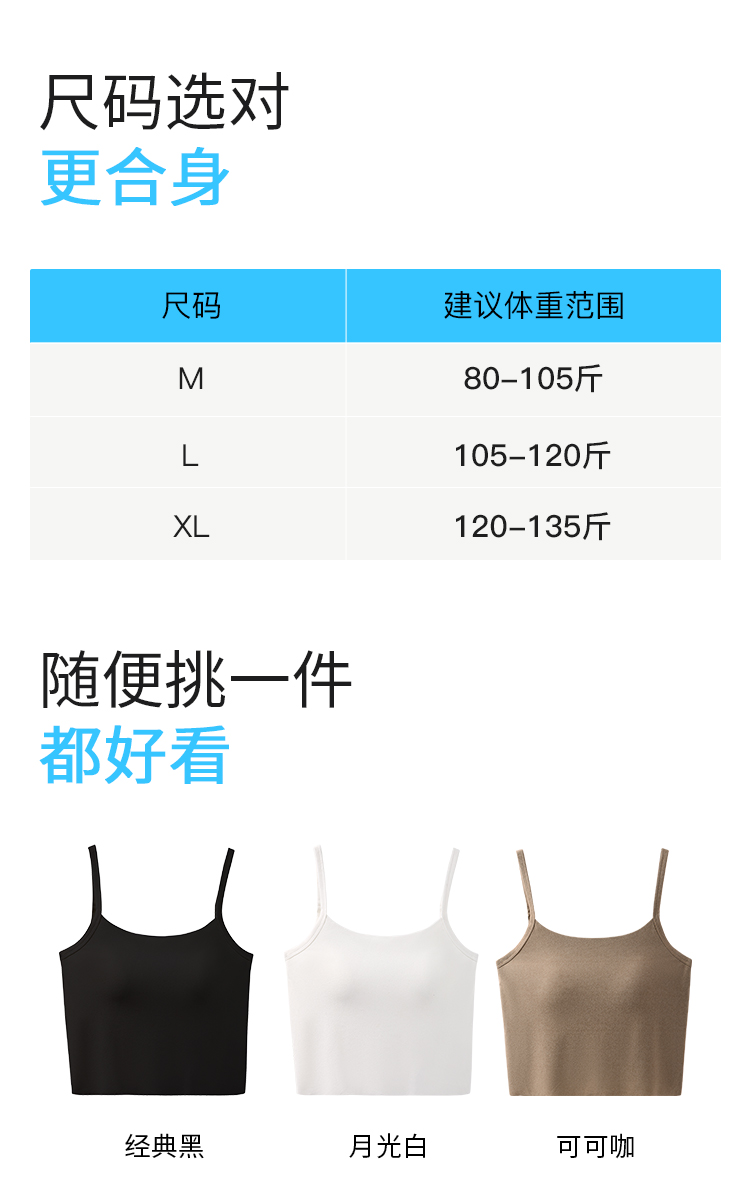 【大U美背 甜辣妹吊带背心女】带胸垫一体免穿文胸外穿打底内搭 花城蜜语