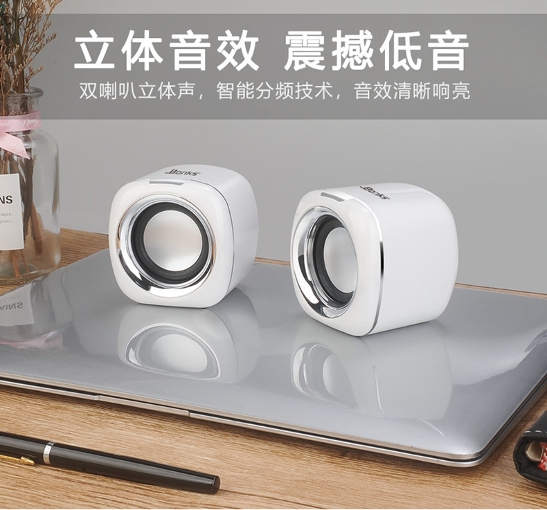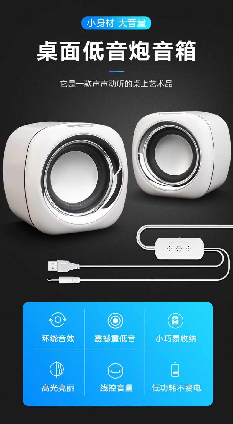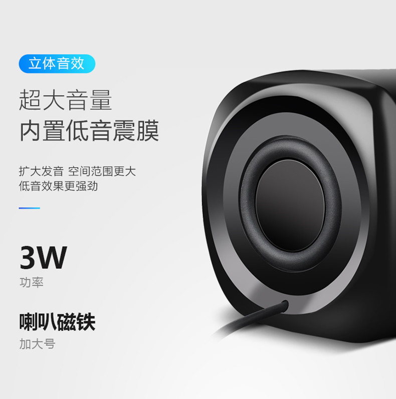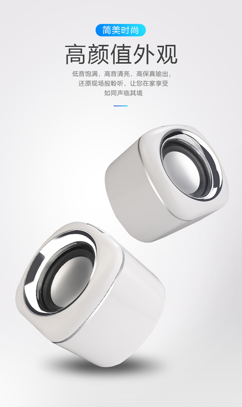 严选【环绕立体声多媒体小音箱白黑色】笔记本小音响电脑音箱迷你手机低音炮USB手机便携家用