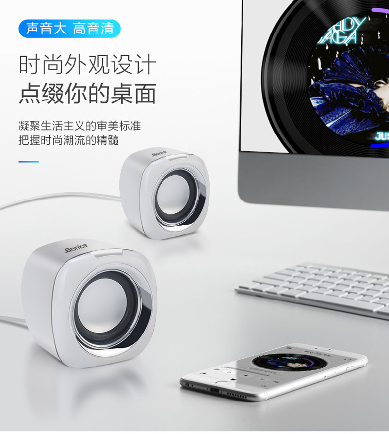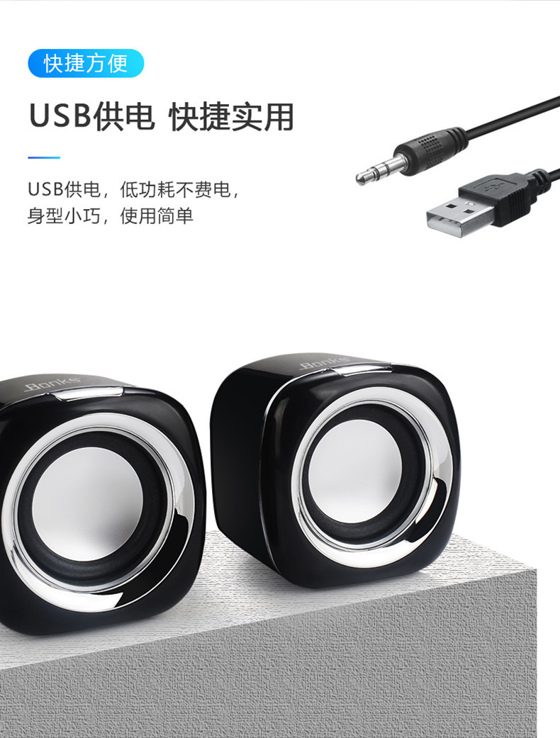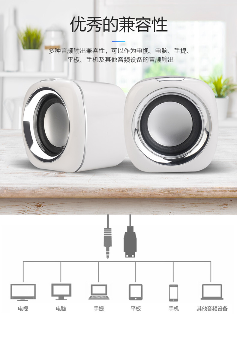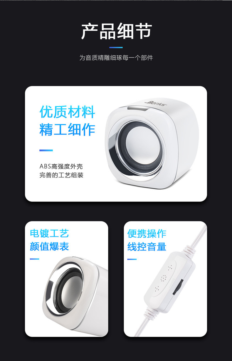 严选【环绕立体声多媒体小音箱白黑色】笔记本小音响电脑音箱迷你手机低音炮USB手机便携家用