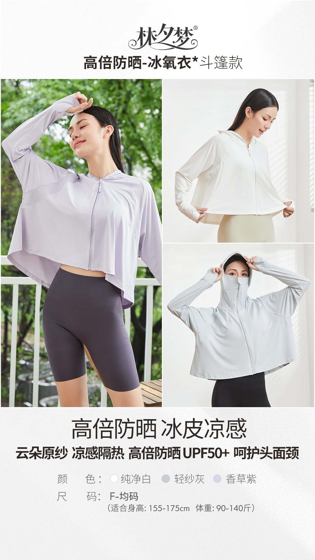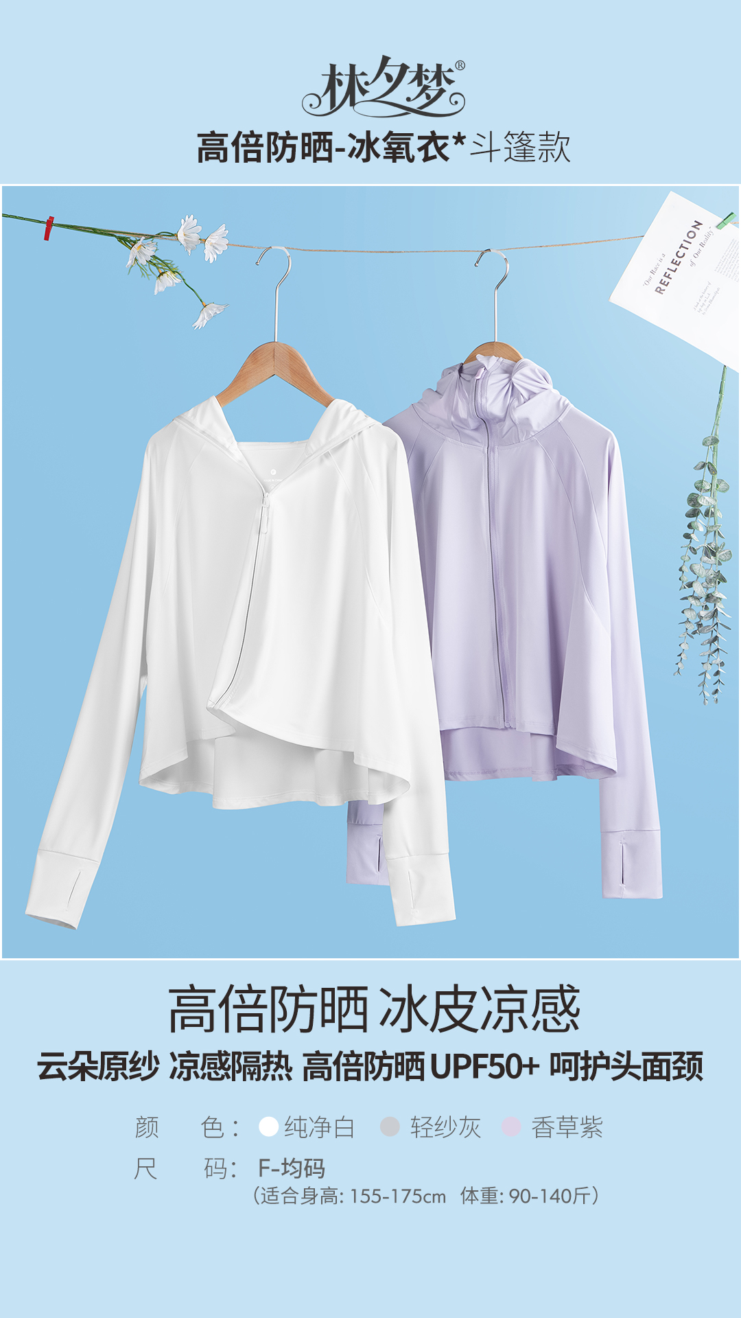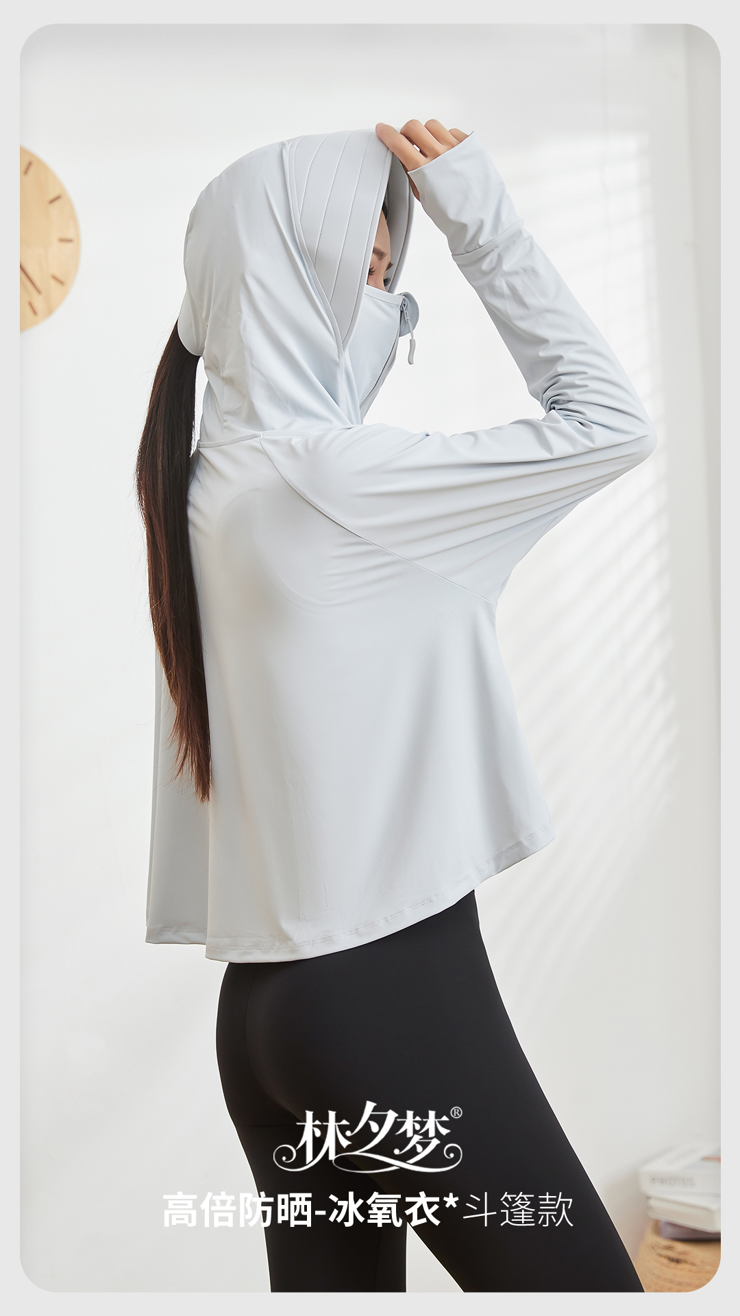 【冰氧衣*斗篷款】云朵原纱 UPF50+高倍防晒 凉感隔热 亲肤冰冰凉 一体防晒 呵护头面颈 更深层更全面地防护肌肤 无惧夏日阳光_2405