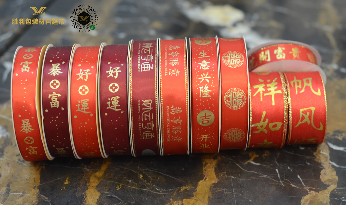 2.5CM*50YDS暴富 好运 开张大吉 喜字 福字 万事胜意 丝带