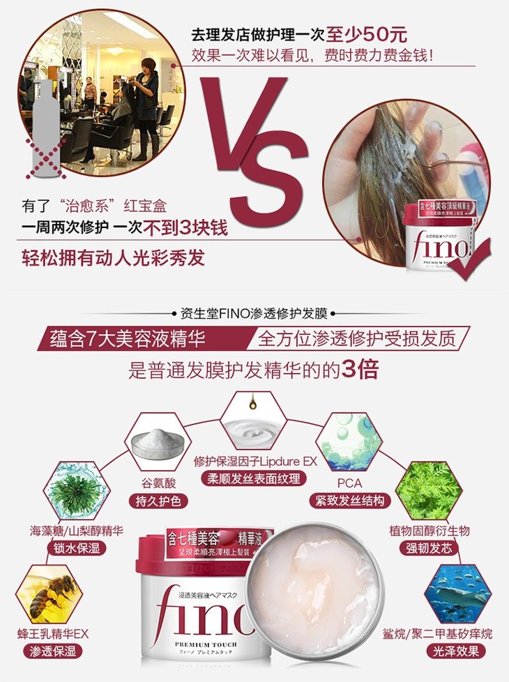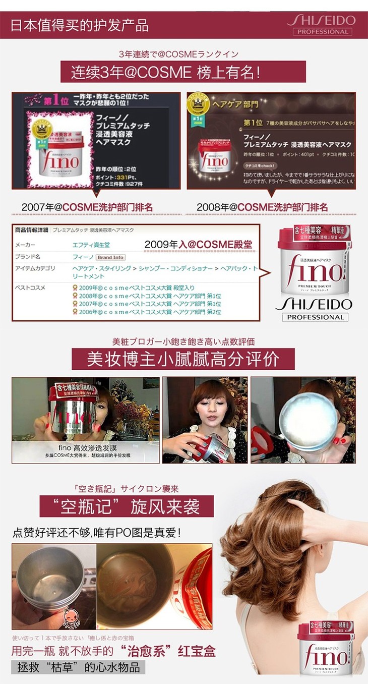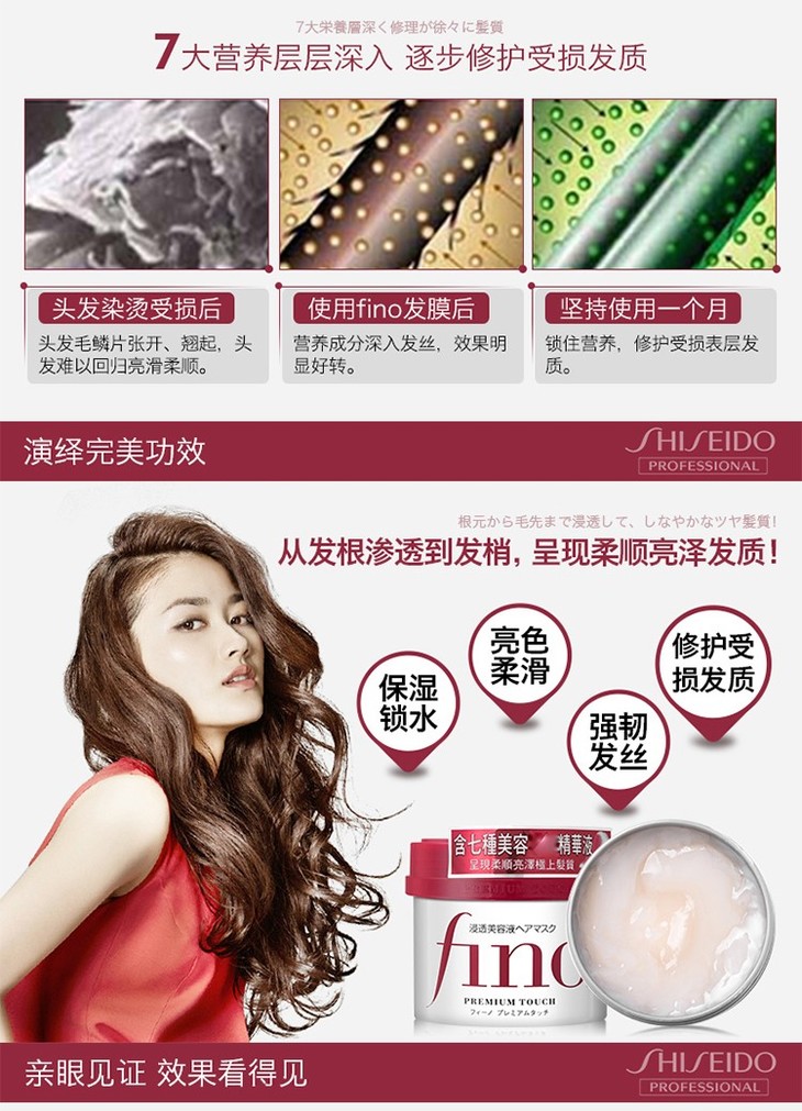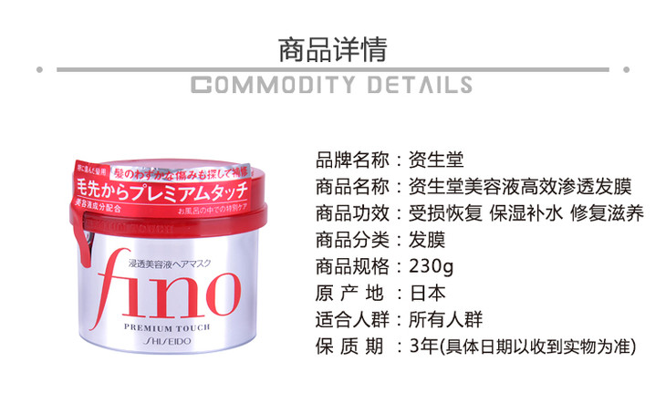 【修复干枯改善毛躁】日本进口资生堂Fino发膜230g