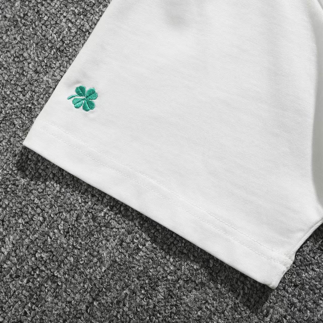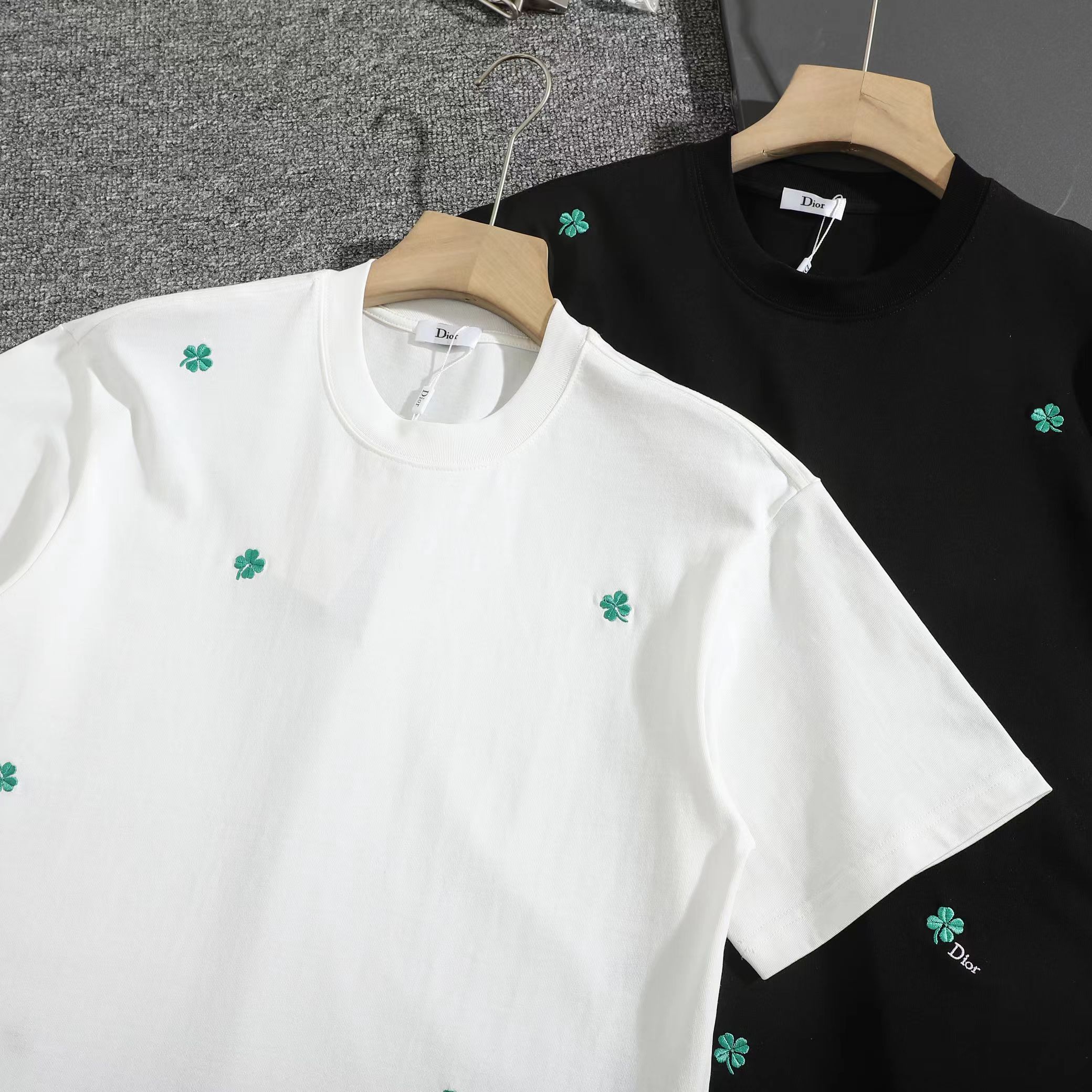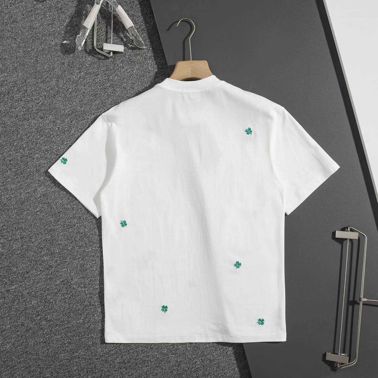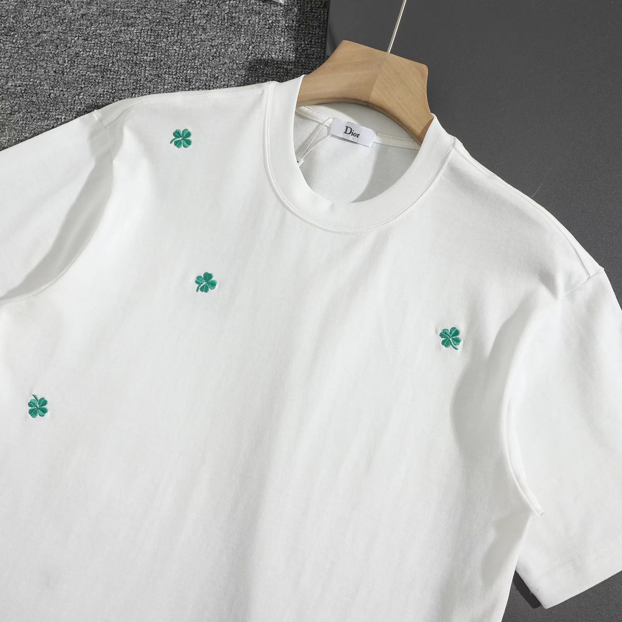 早春新款T恤jing致万针饱满立体刺绣宽松短袖,将品牌字母与四叶草融合,辅以精密立体万针饱满刺绣工艺,简约大气。立体灵动感,细致精巧,大方而时尚,翻台率不断地夏季爆款。。面料取用300克高克重长绒棉,质地柔软舒适,肤感细腻爽滑,男女同款