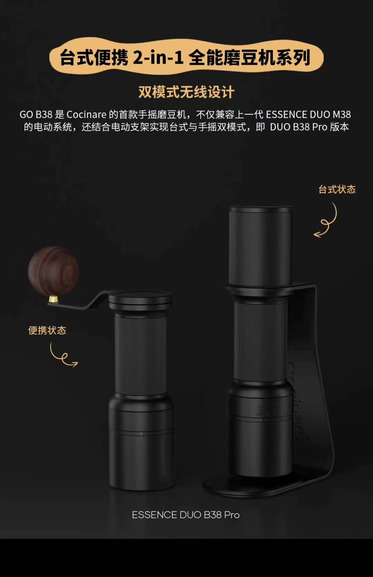 Cocinare2合1磨豆机手摇磨豆机电动磨豆机十刃鬼刃B38联名