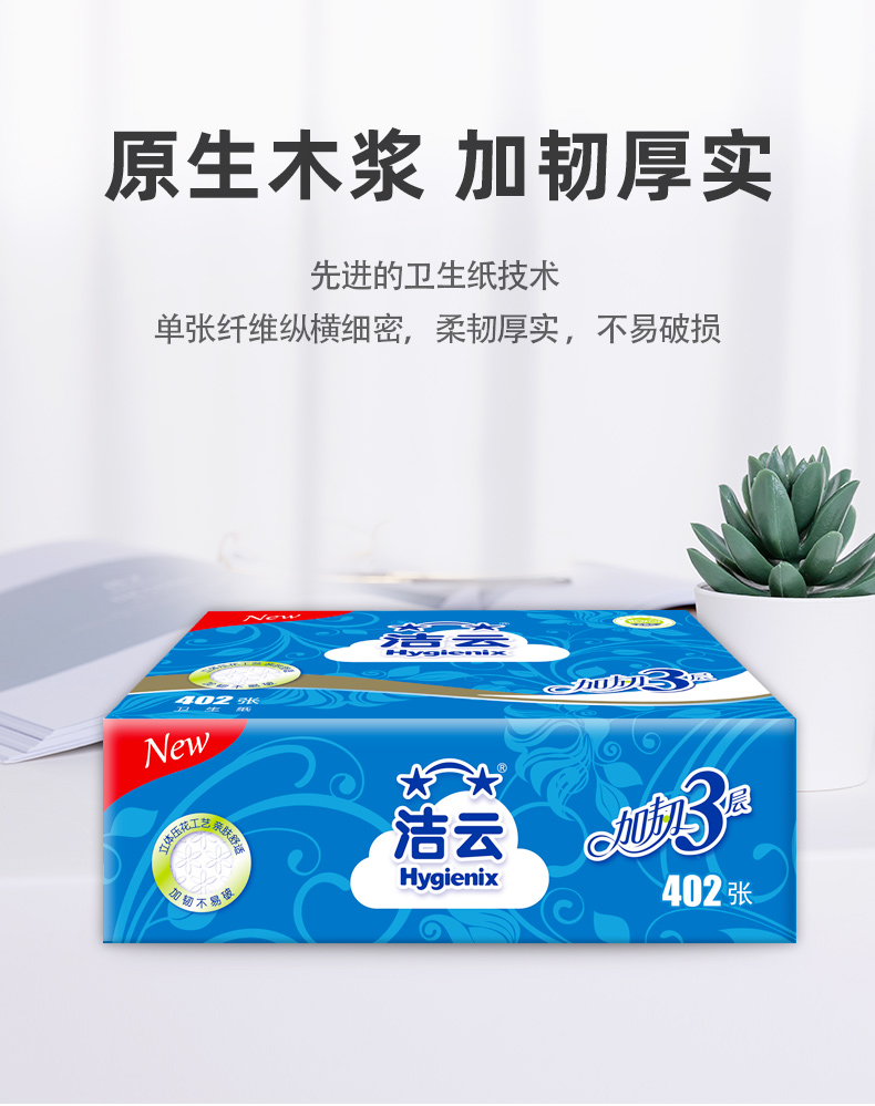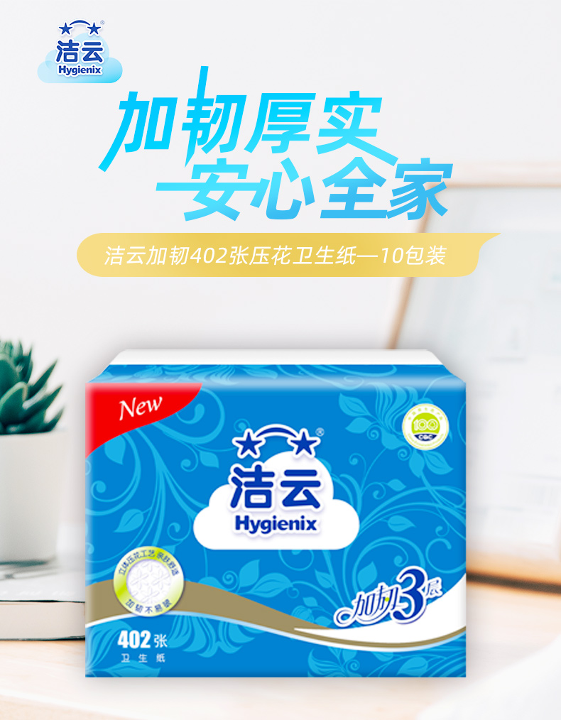 洁云卫生纸厕纸家用402张厕纸柔韧压花草纸刀切纸整箱家用实惠装