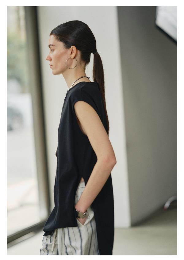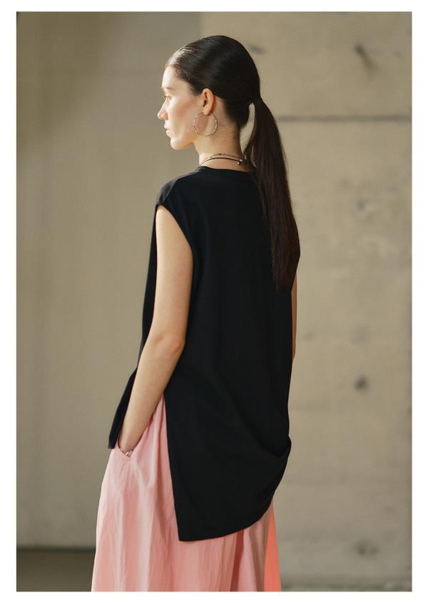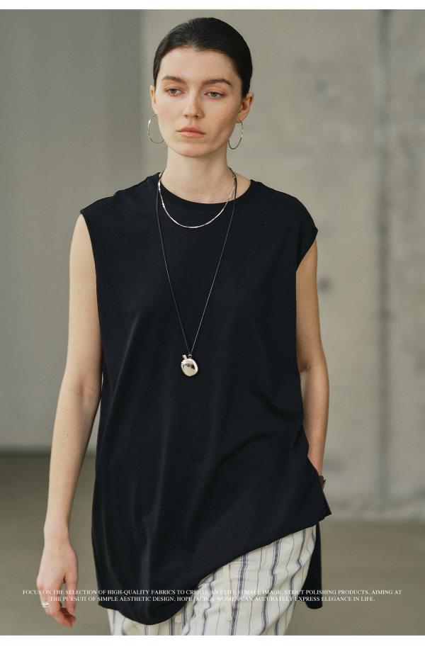 棉仓3631503008-IACHOE斜下摆中长款背心