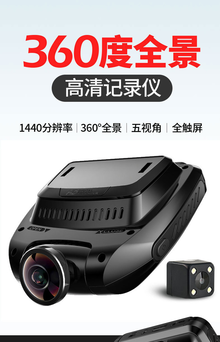 。任e行隐藏式行车记录仪双镜头高清夜视360度全景24小时监控
