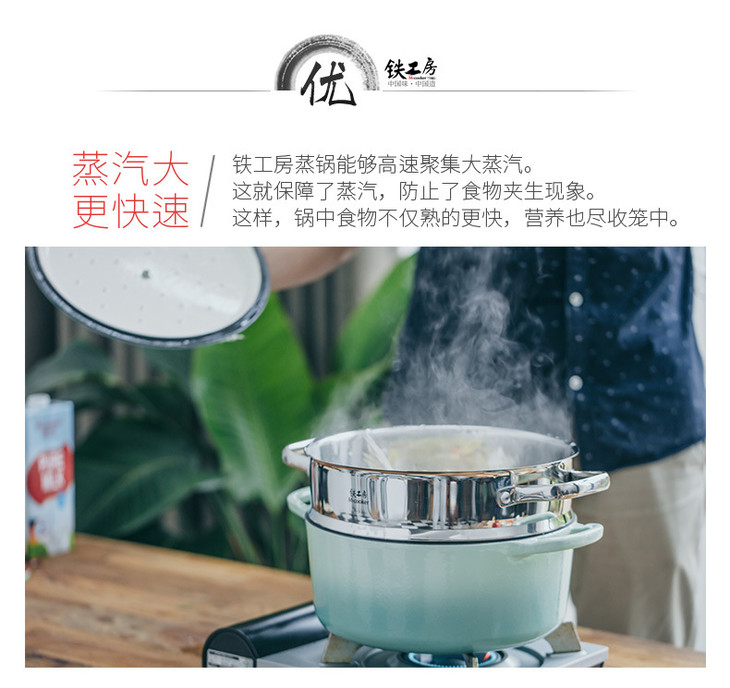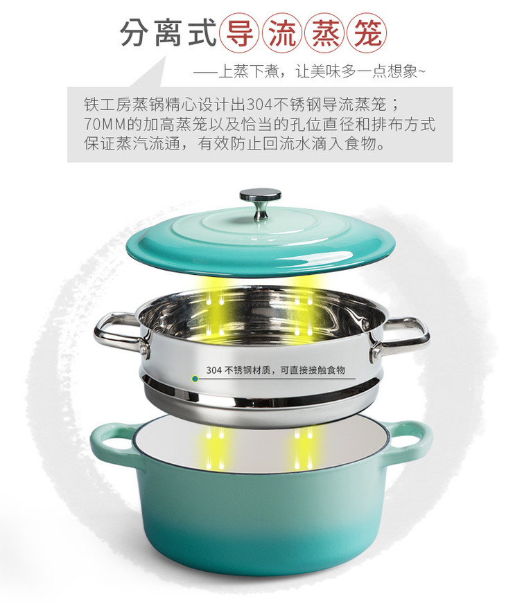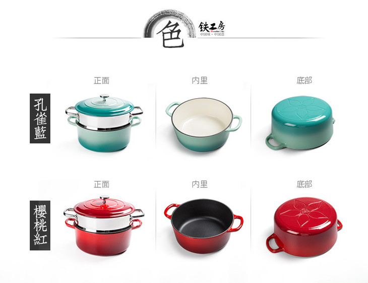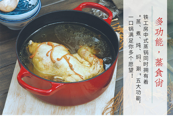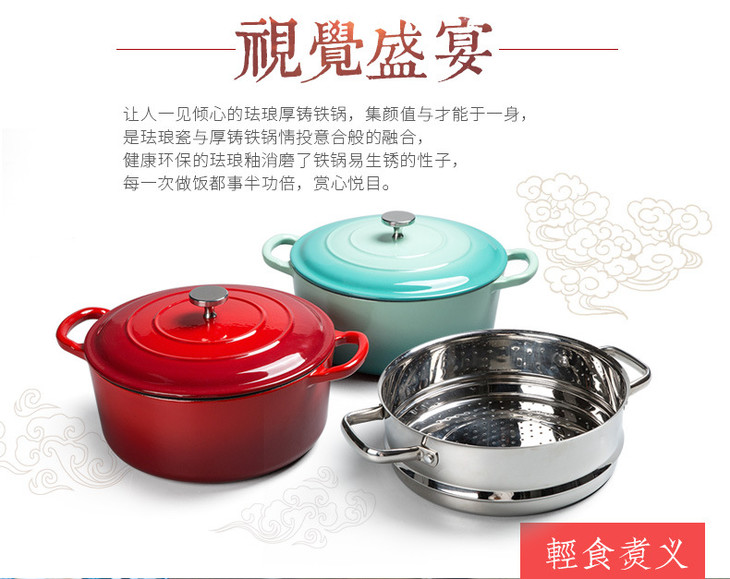 【铁工房】*珐琅蒸锅汤锅加厚铸铁锅生铁搪瓷锅电磁炉通用炖锅