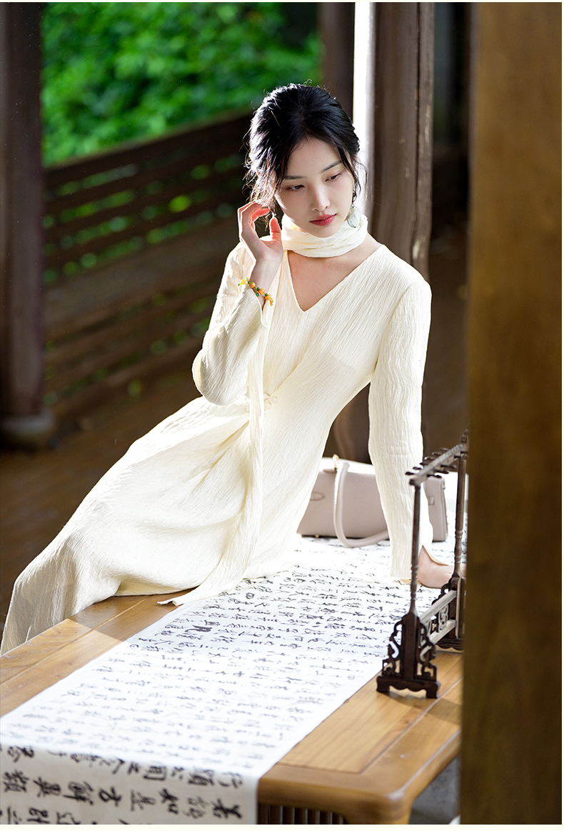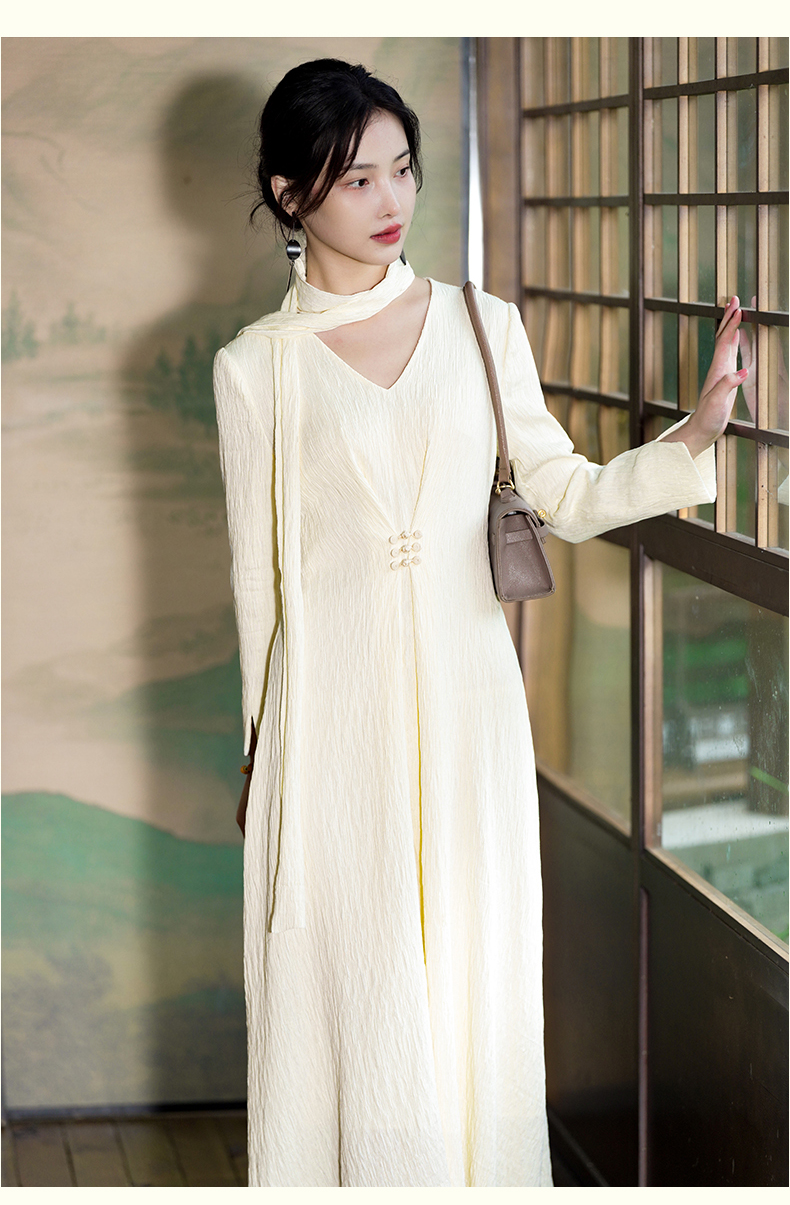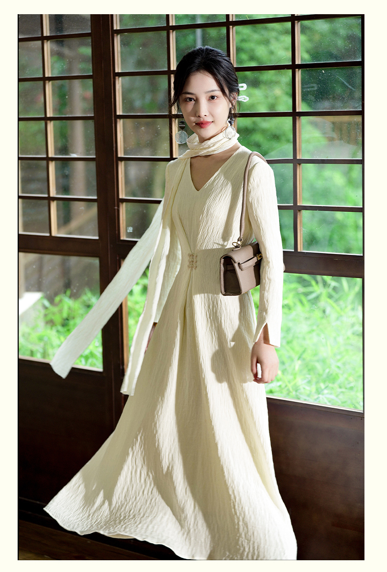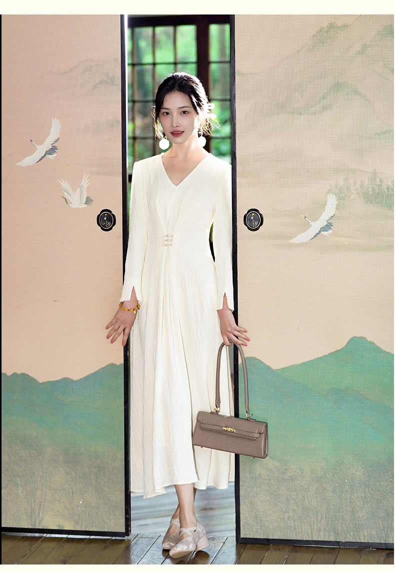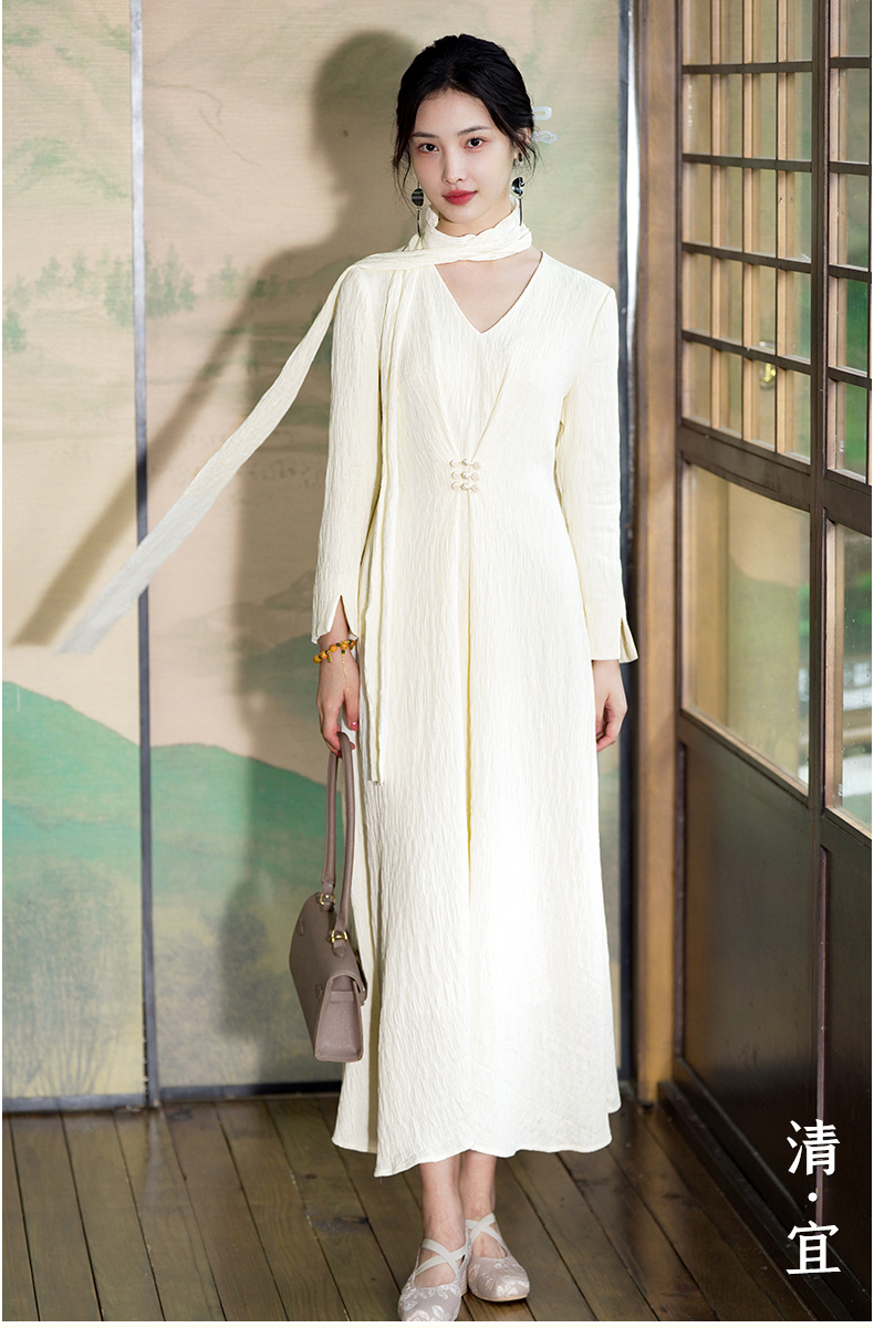 逸红颜清宜2025秋新早秋高级感新中式轻国风气质连衣裙长袖压褶裙