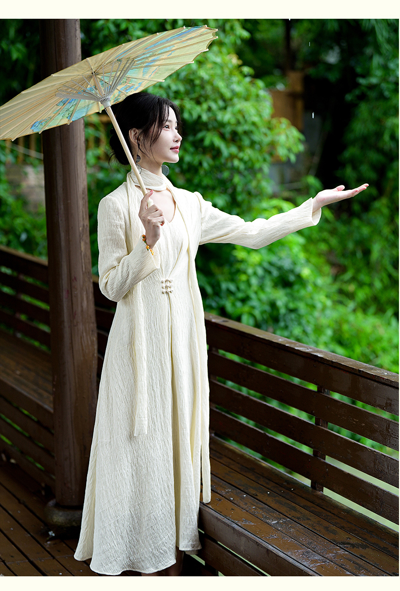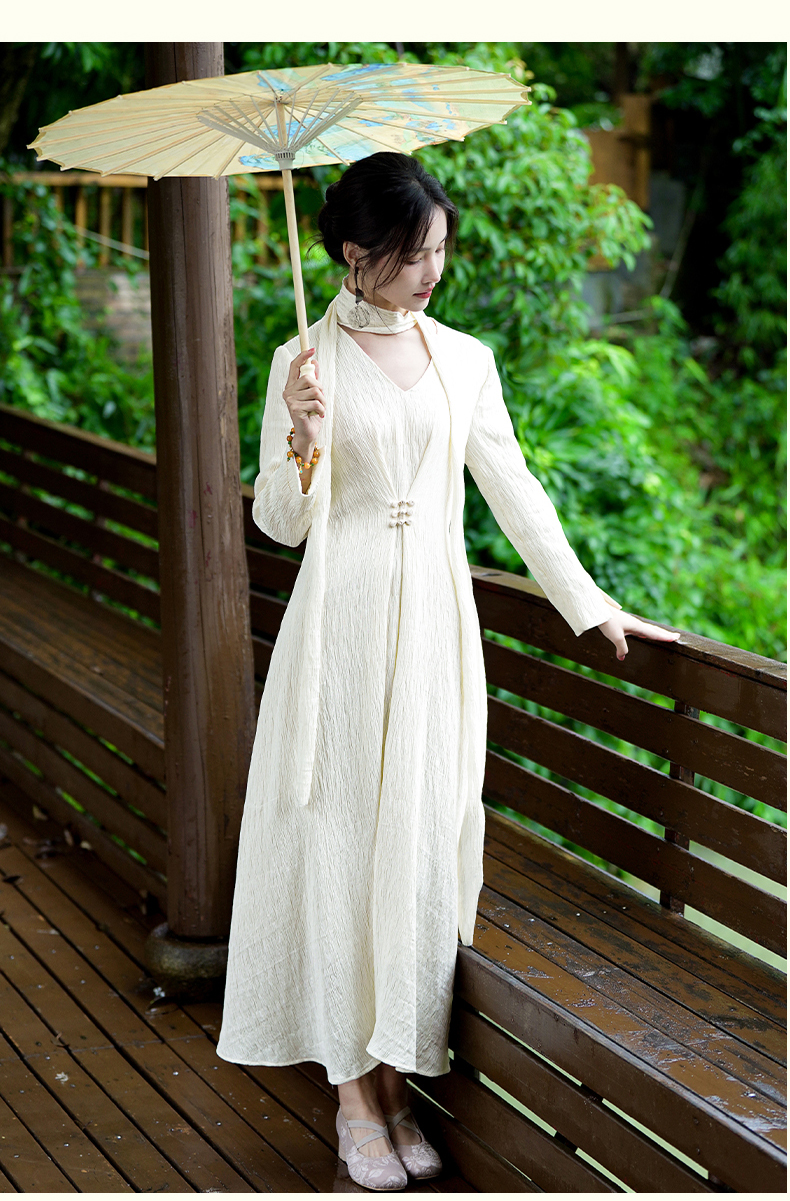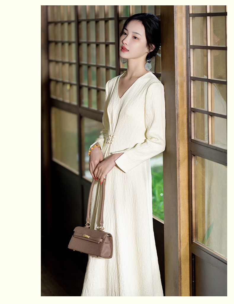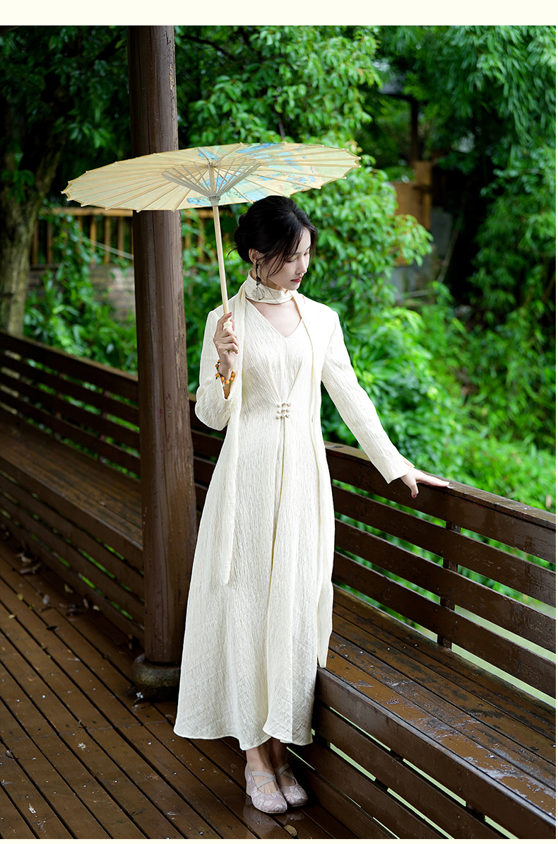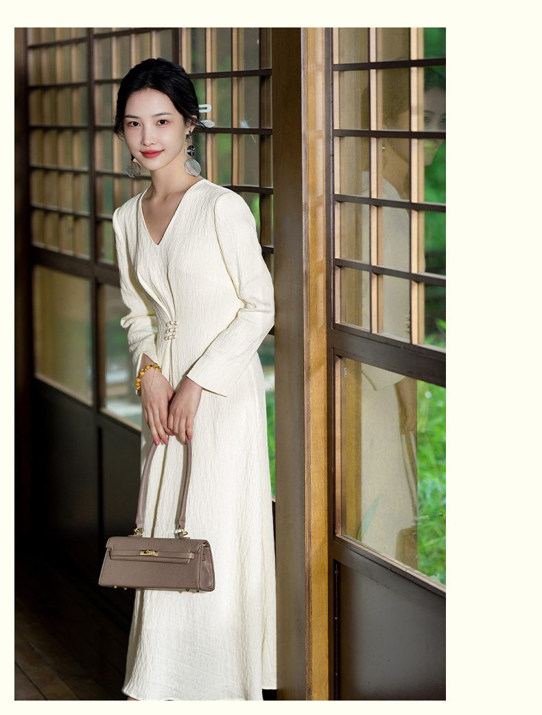 逸红颜清宜2025秋新早秋高级感新中式轻国风气质连衣裙长袖压褶裙