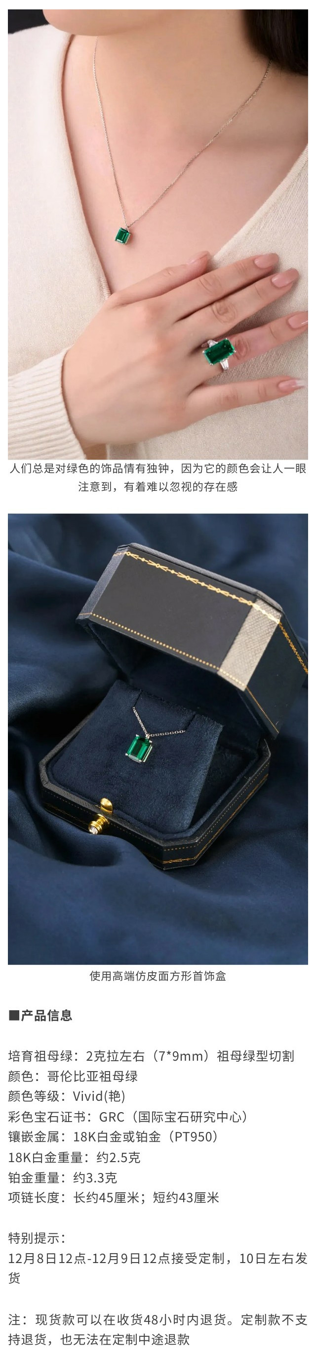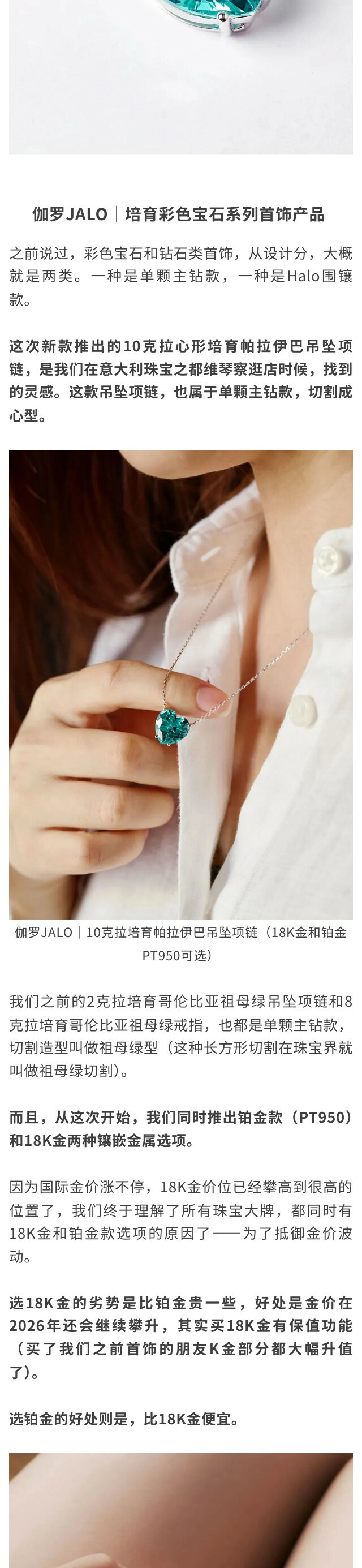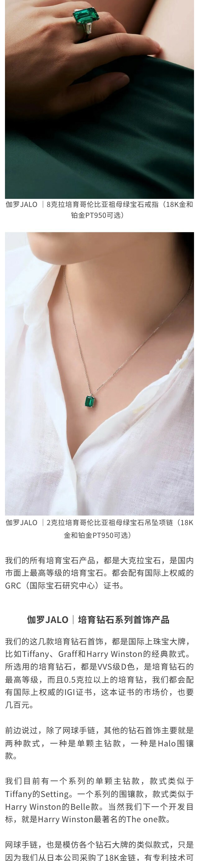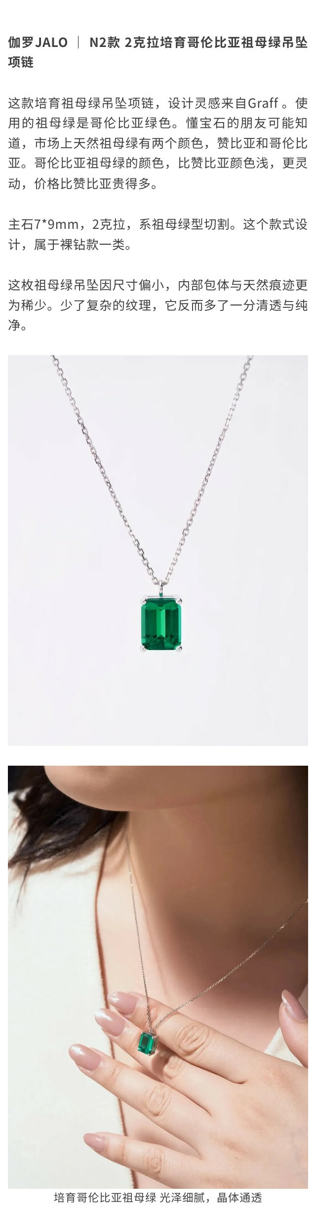 伽罗 JALO N2款 培育哥伦比亚祖母绿宝石18K金吊坠项链