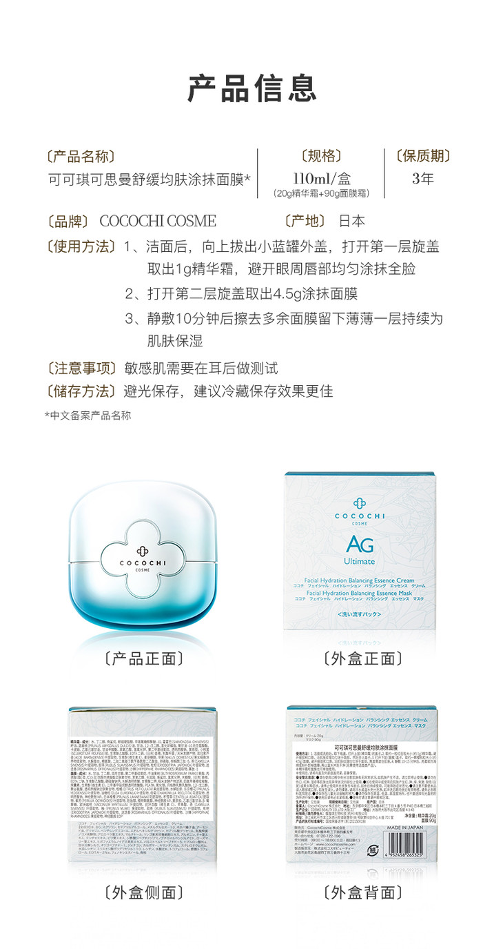 【限时直降】COCOCHI AG可可琪可思曼舒缓均肤涂抹面膜 20g+90g