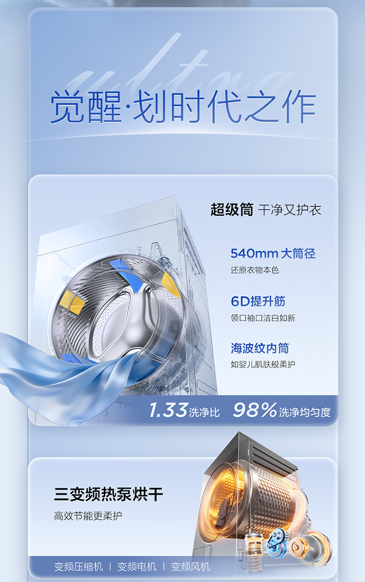 【新品上市】TCLAI超级筒洗烘套装12KG热泵烘干机护理G120T7WUltra-DIS +H120P9Ultra-BBS