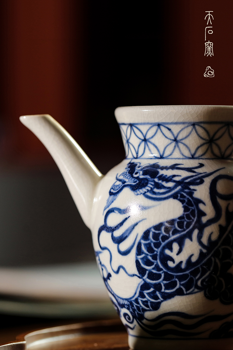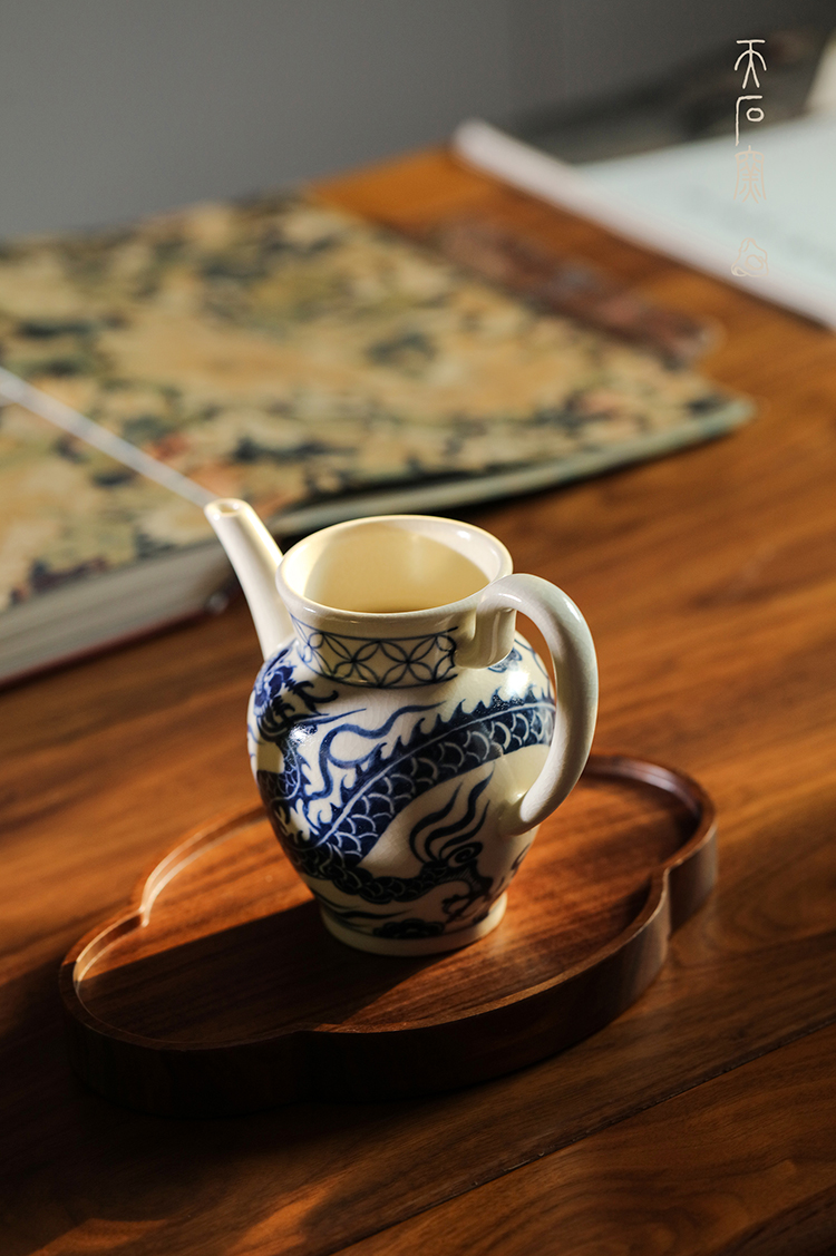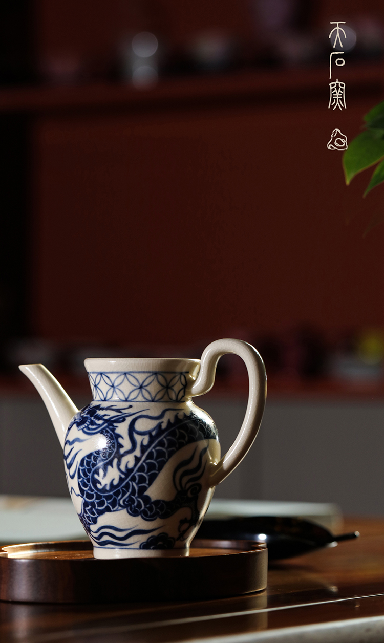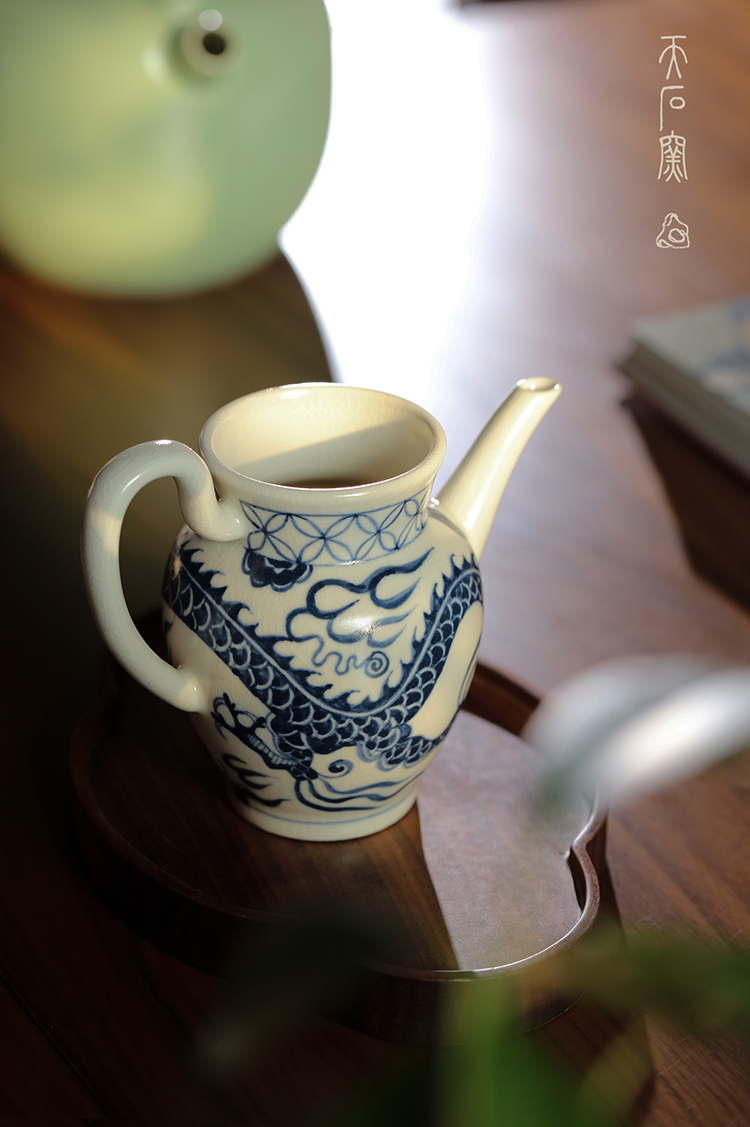 问鼎天石窑白陶泥元青花执壶公杯(龙)