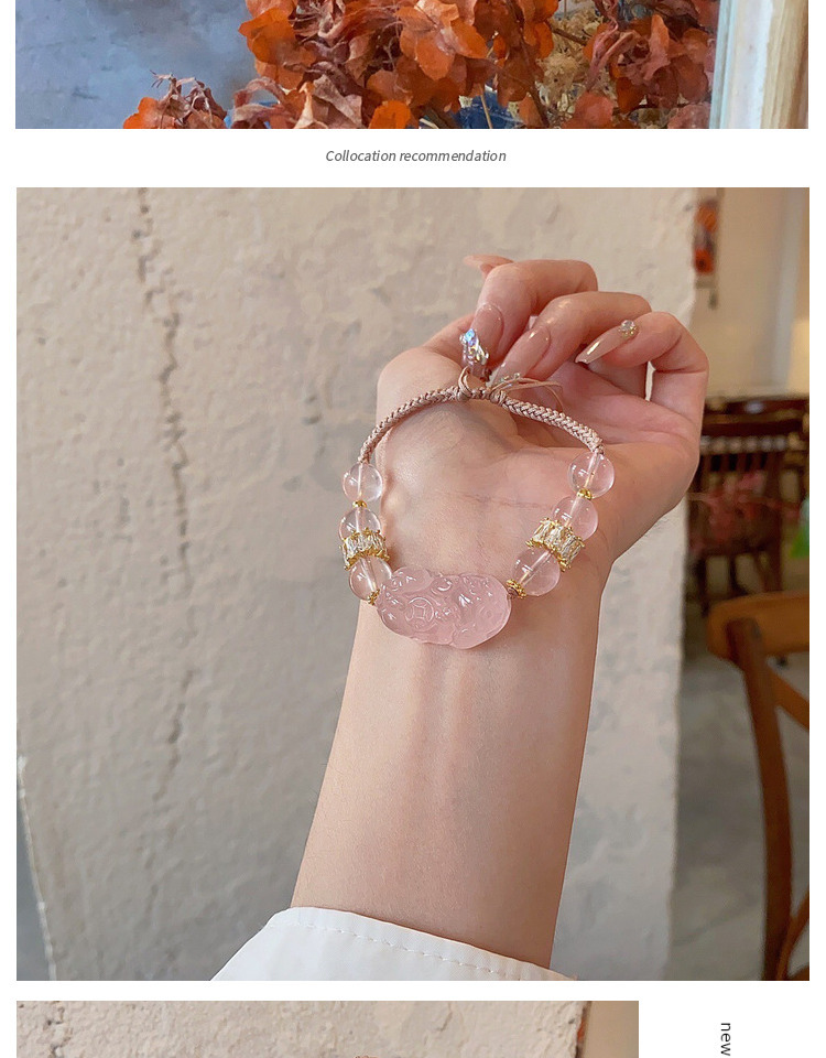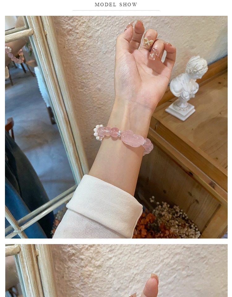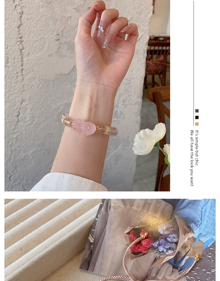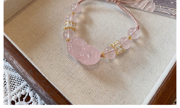 六鑫珠宝 马达加斯加粉晶貔貅手链