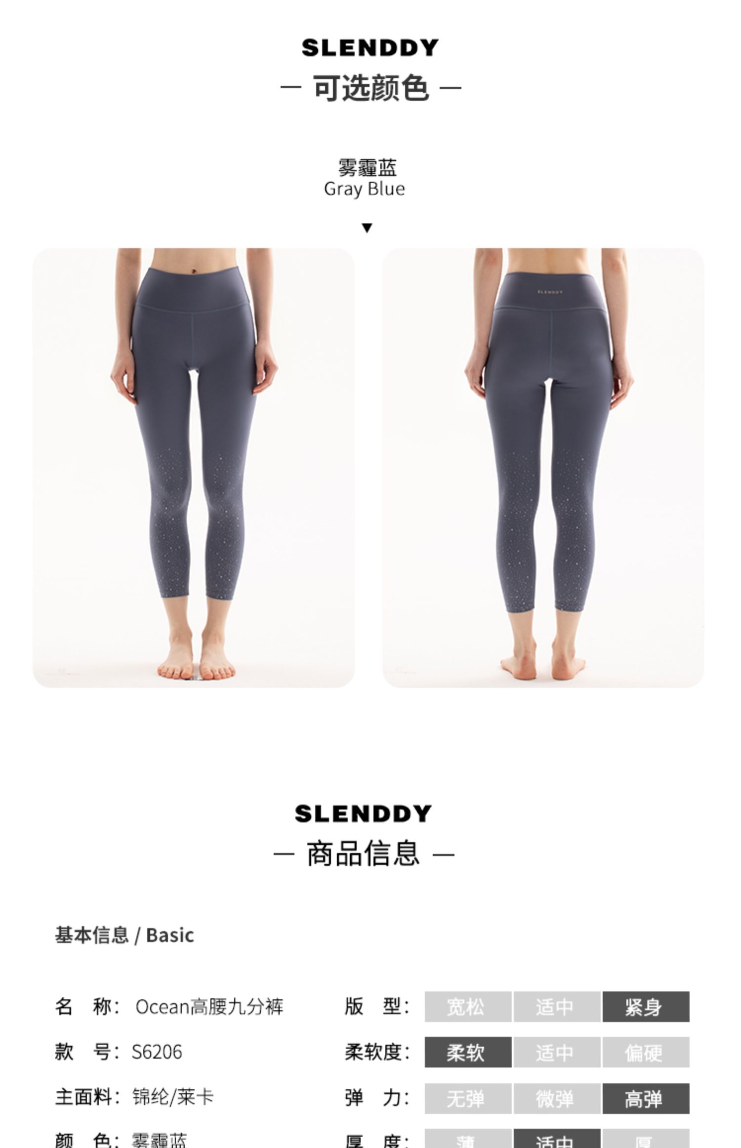 slenddy Ocean高腰瑜伽裤女提臀裸感健身裤运动紧身裤蜜桃臀s6206