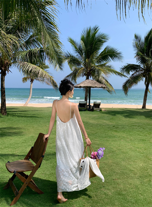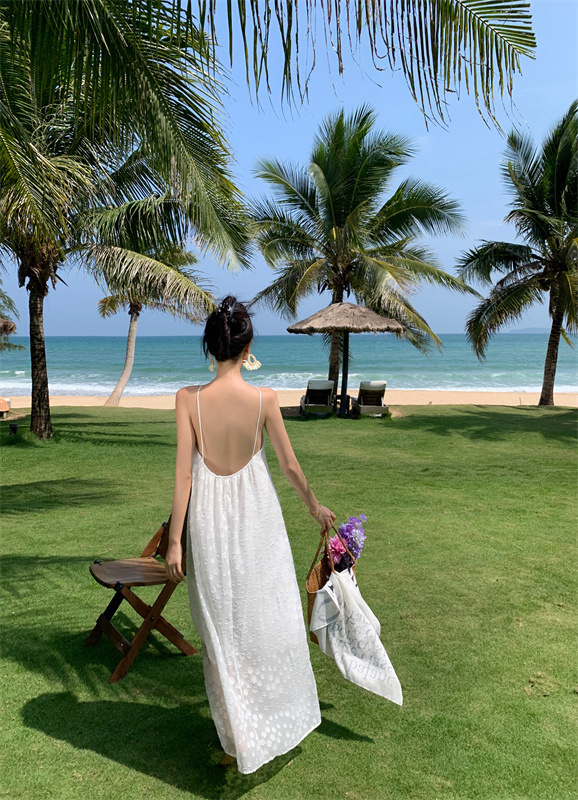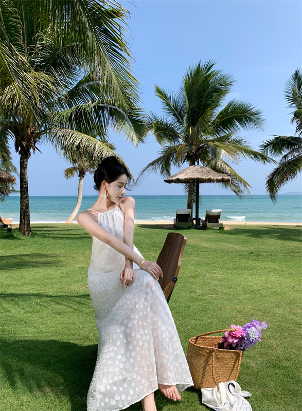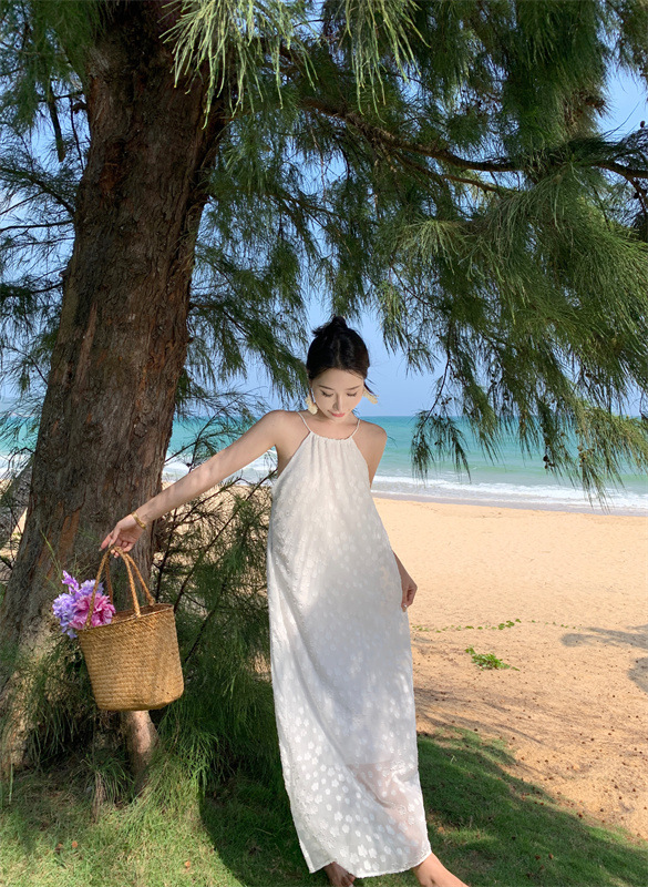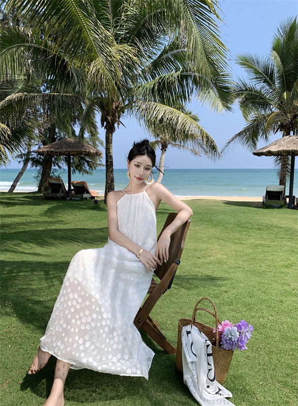 【超美纯欲❗️茶歇法式露背吊带连衣裙】纯欲风挂脖白色连衣裙女,夏季新款甜美性感度假法式裙子QQ