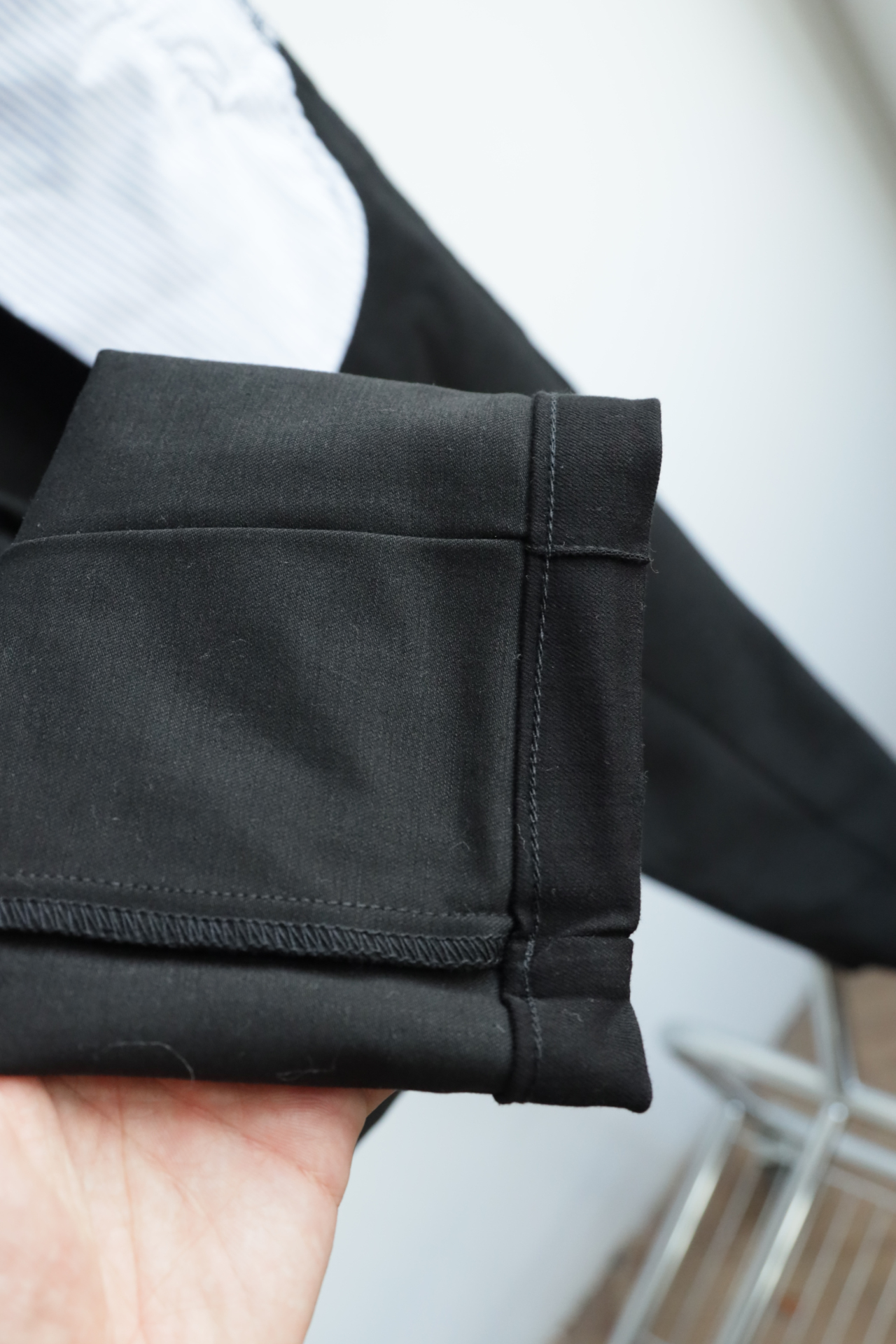 褶缝休闲长裤,裤子中间有一条固定的褶缝,上身穿会比较有形,休闲商务的感觉,配有弹力的改良西裤腰头,抗皱很不错的质感