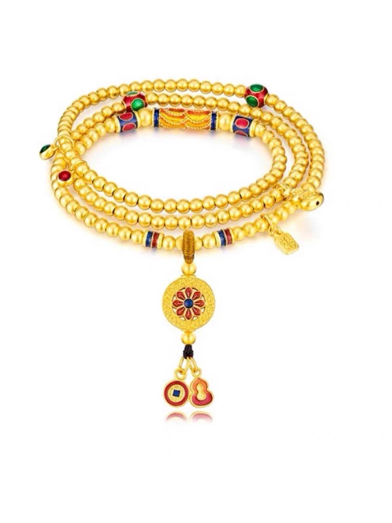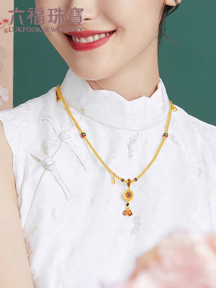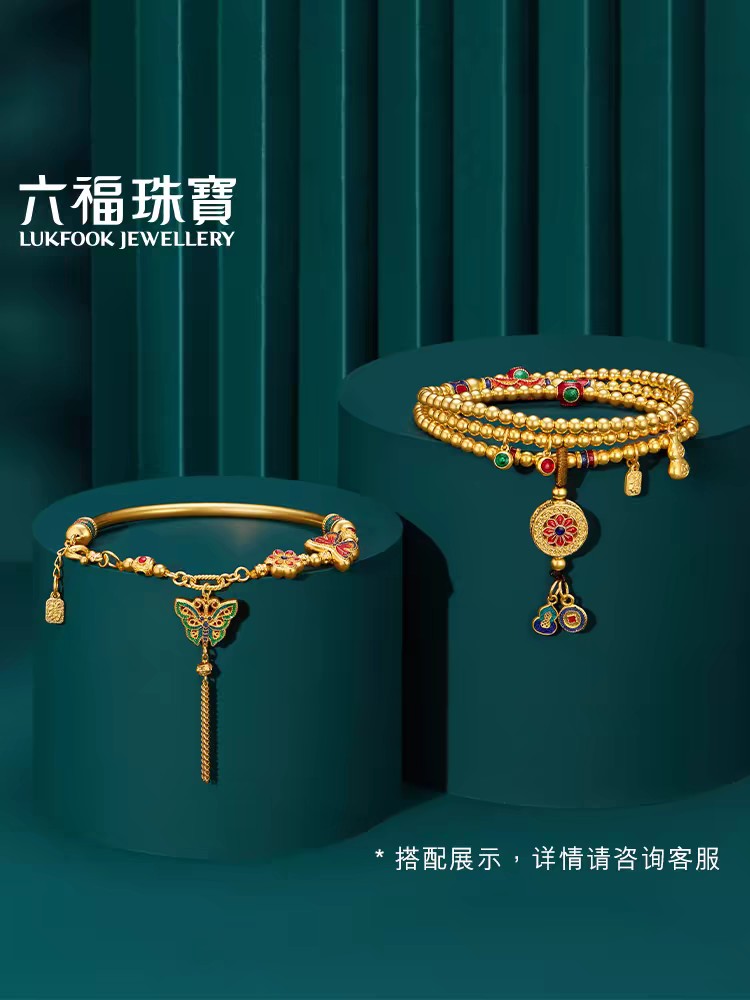 【计价黄金】2楼六福珠宝福满传家古法黄金项链珐琅手链,克重约38克左右