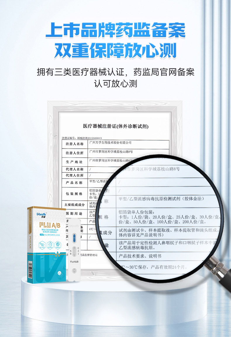 万孚(Wondfo)甲型流感病毒抗原检测试剂 甲流检测盒 快速居家检测试纸 感冒发热非肺炎支原体试剂盒 1人份