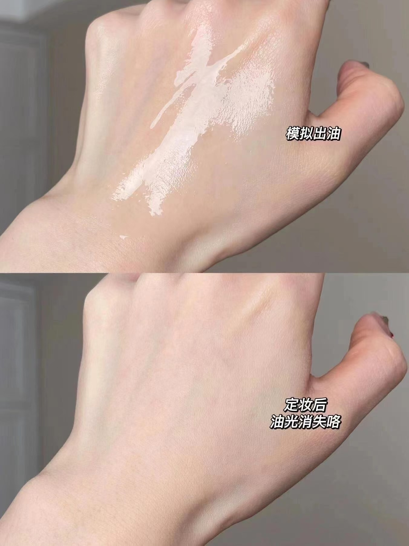 用手摸摸根本不会卡在细纹里,轻轻搓两下就直接和皮肤融为一体了~