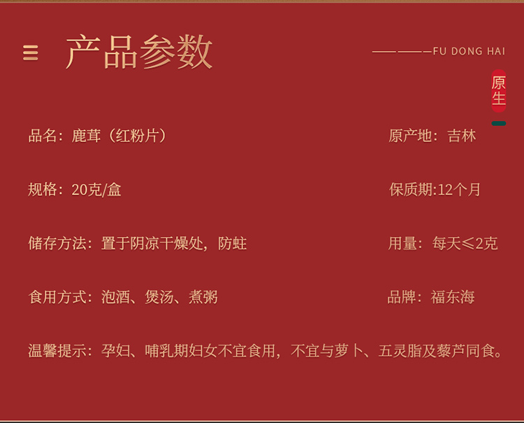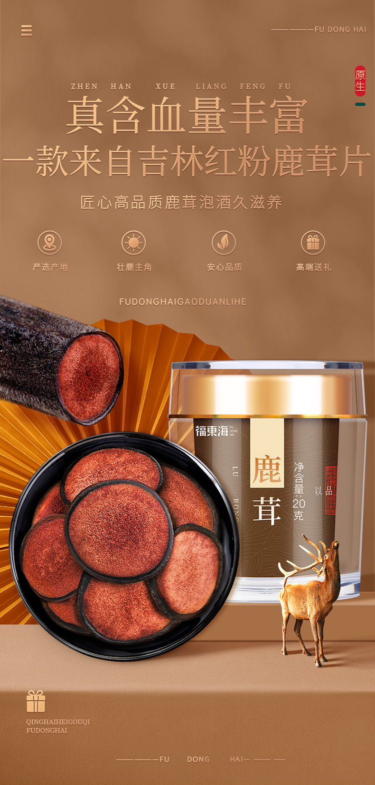 福东海 鹿茸片20克 吉林长白山鹿茸粉片血片 独立小包装 泡酒料滋补品 送礼礼品