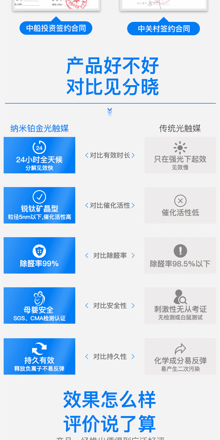 所以无论有光无光,清科蓝纳米铂金长效光触媒都能持续分解甲醛,而且效果也特别显著。
