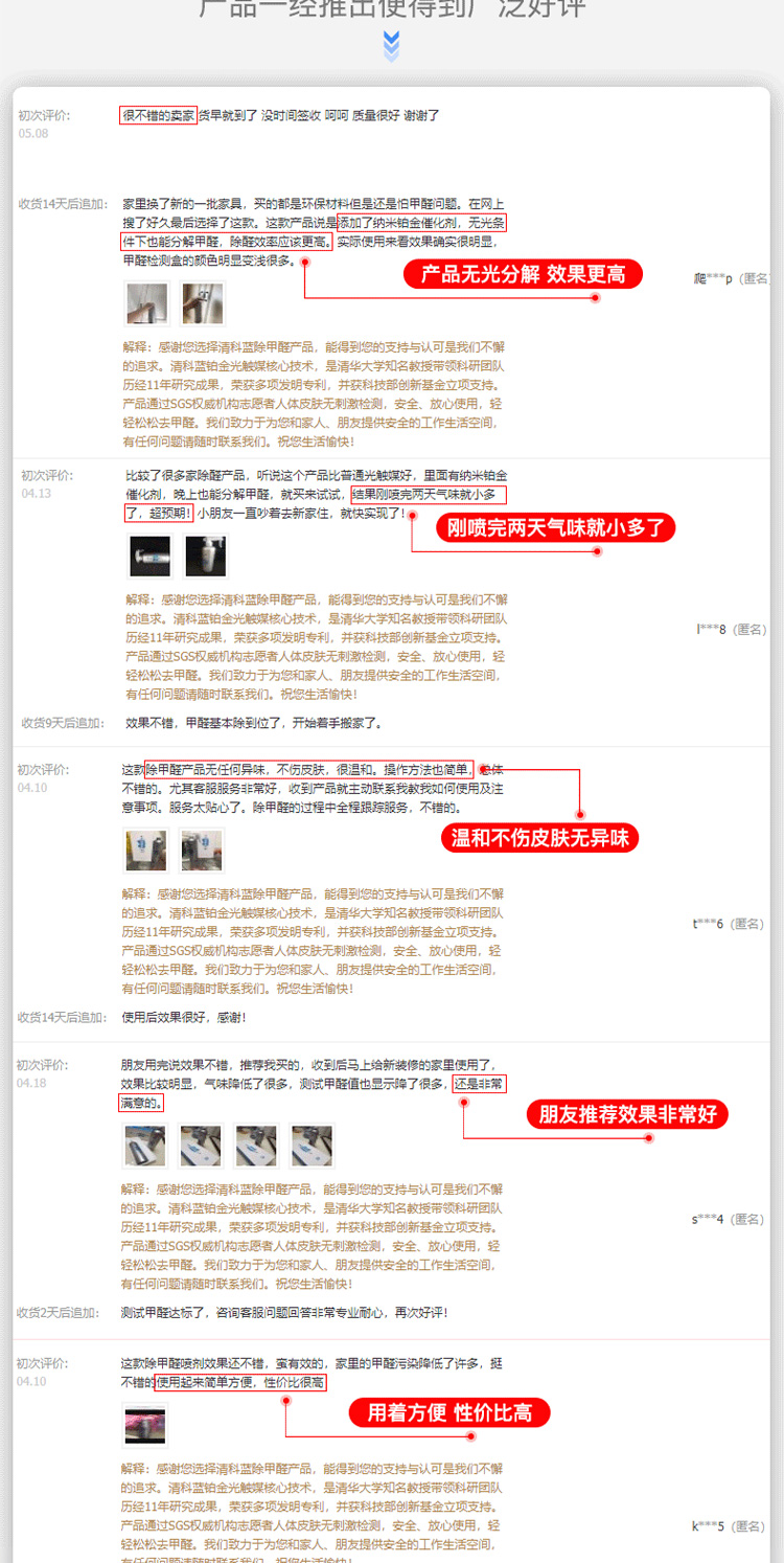 品牌方承诺,除醛效果支持CMA检测,甲醛不降包退。