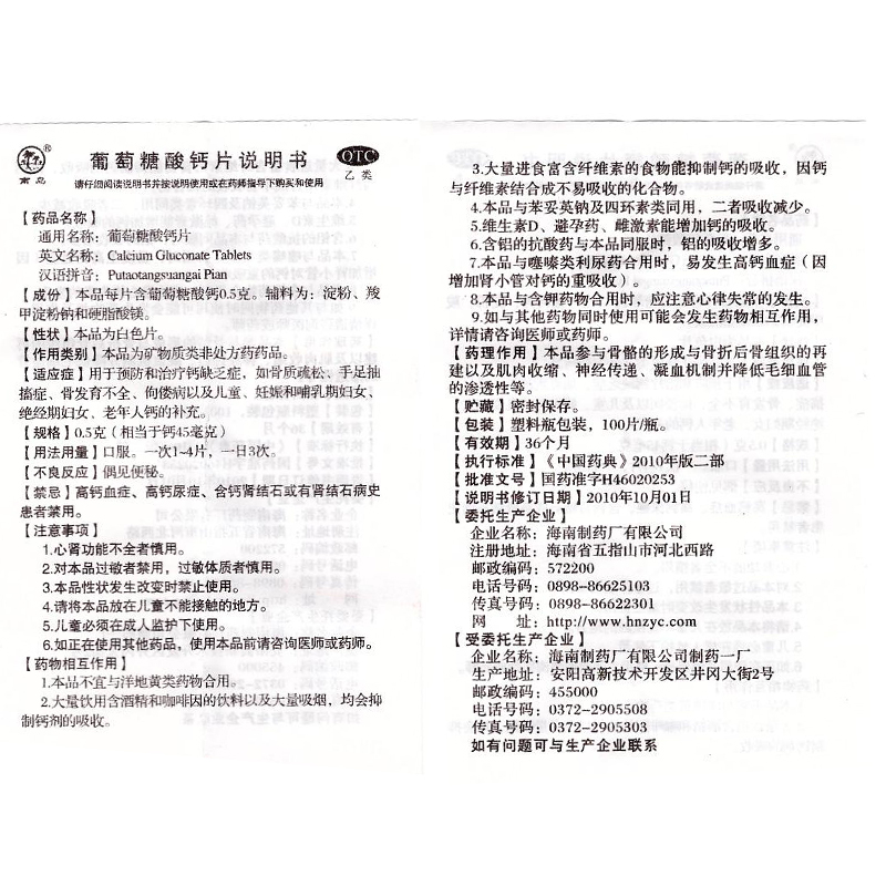 正品】南岛葡萄糖酸钙片100片佝偻病骨质疏松儿童妇女老年人补钙