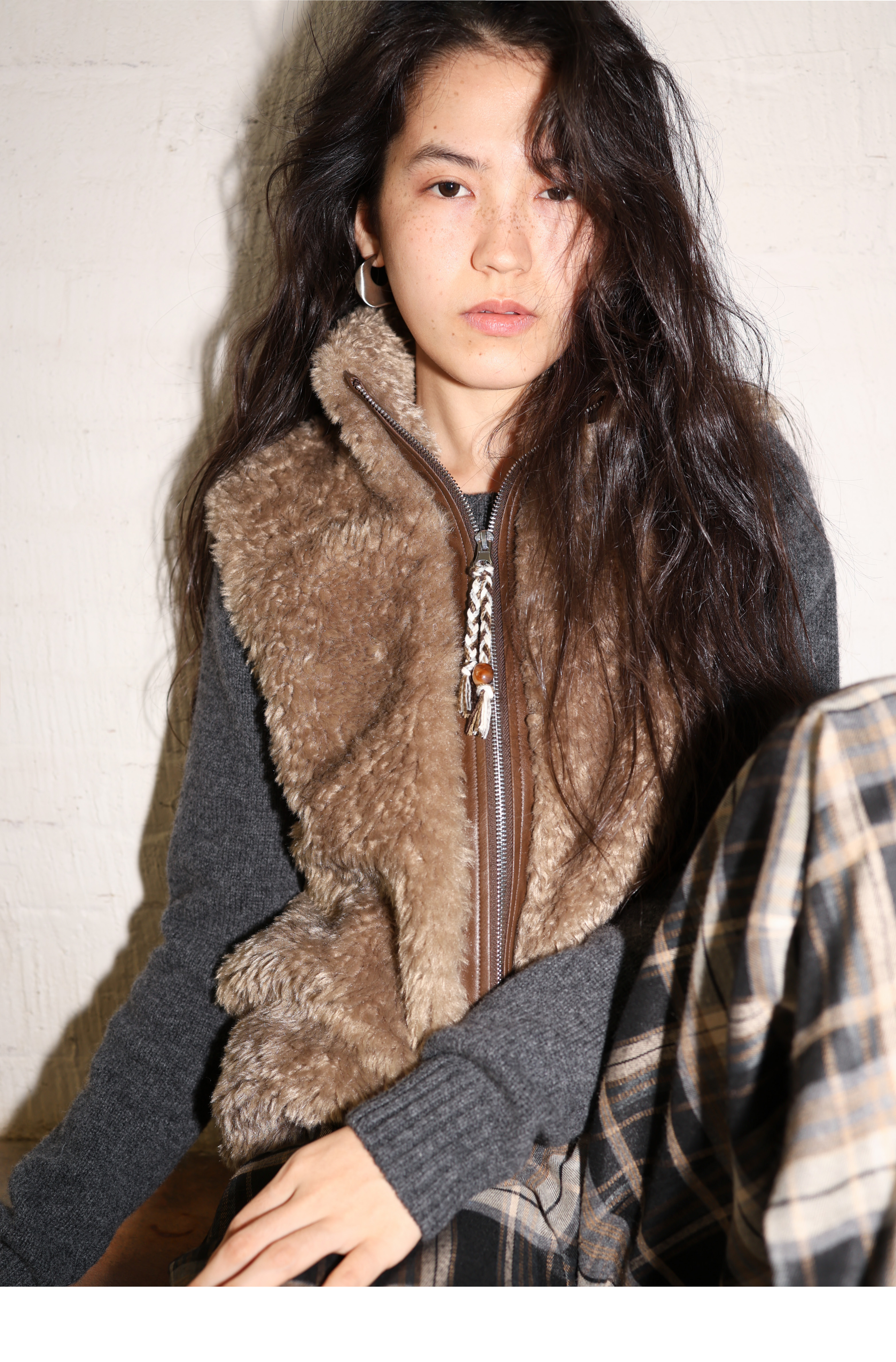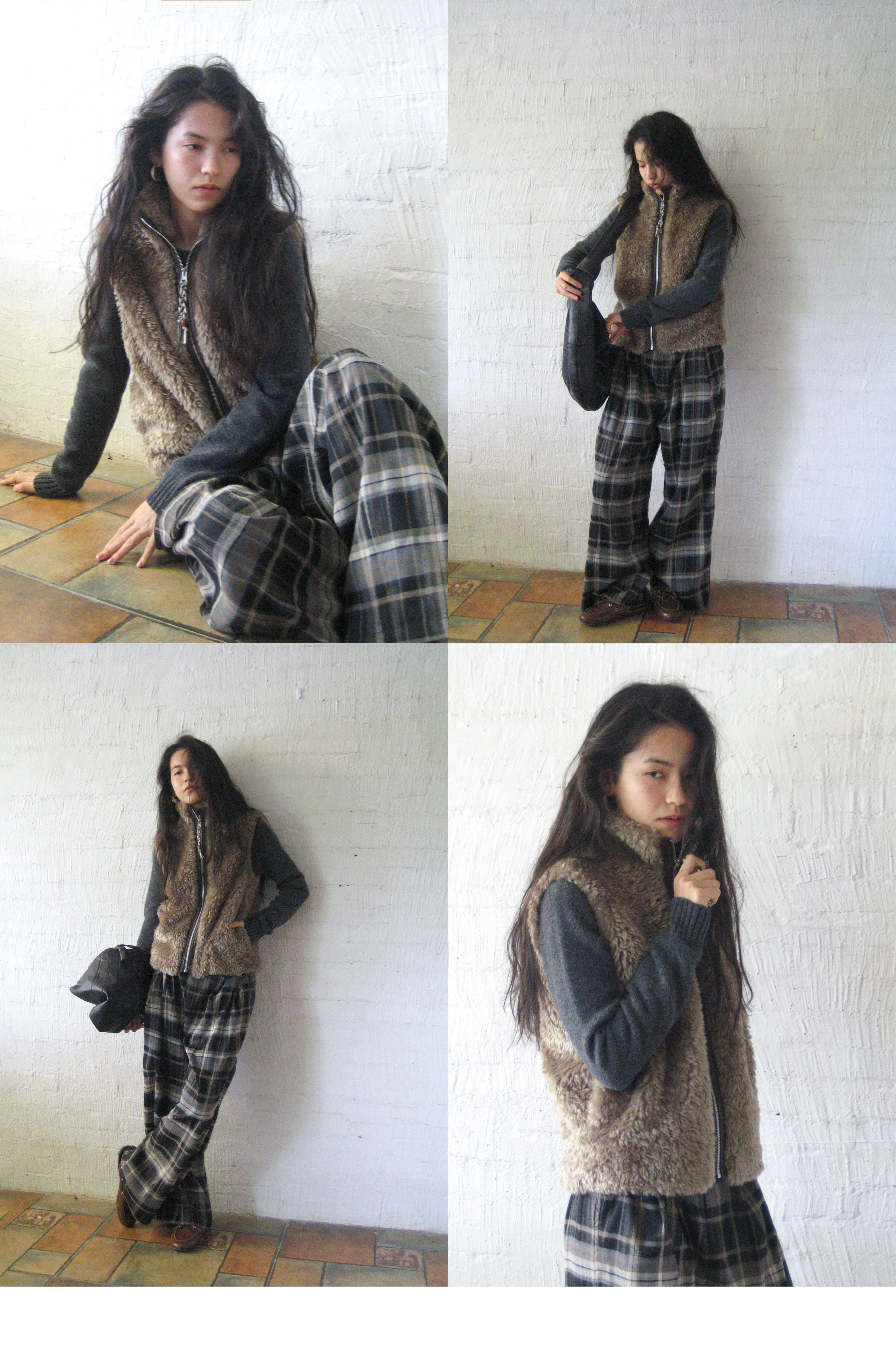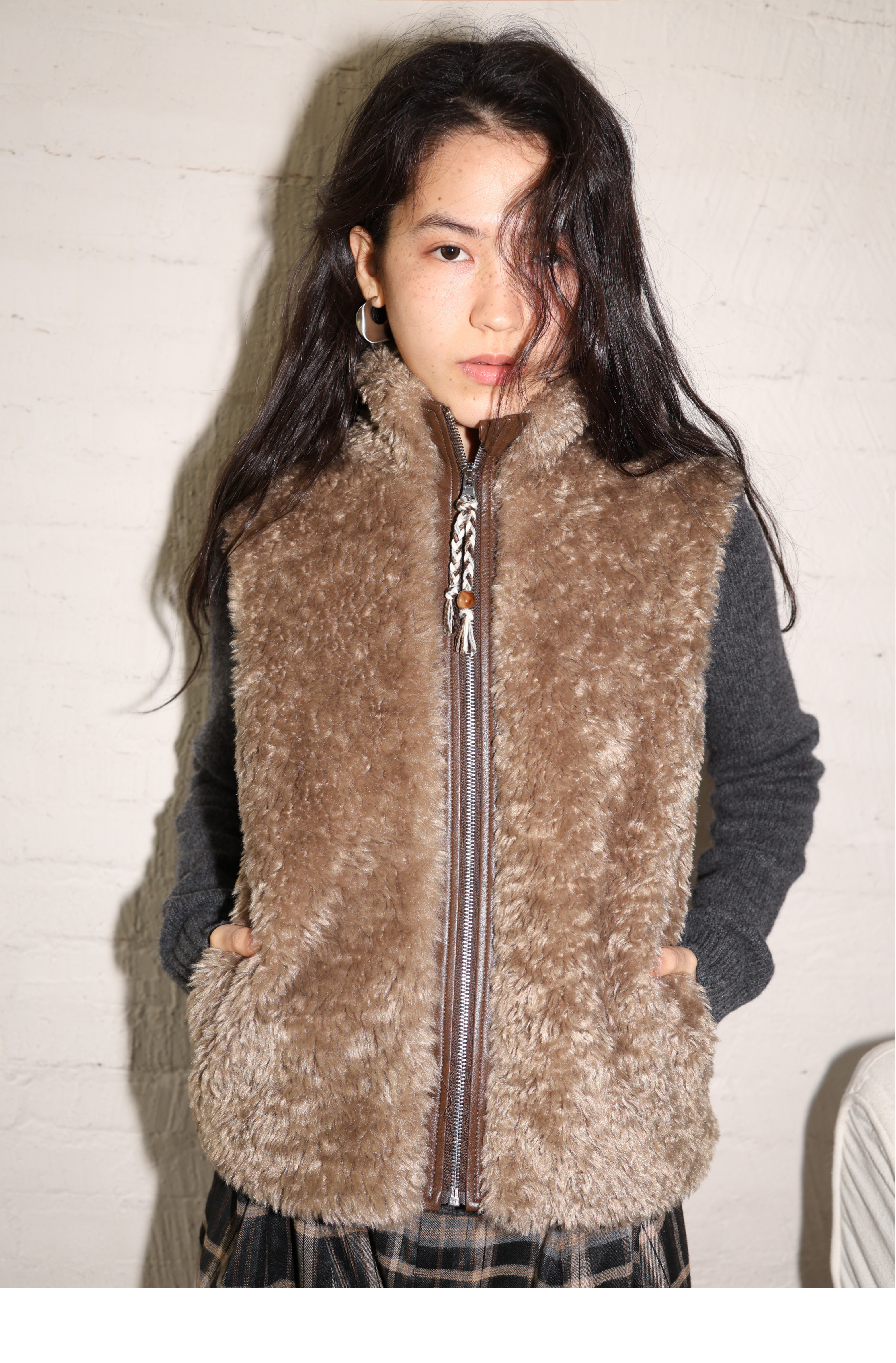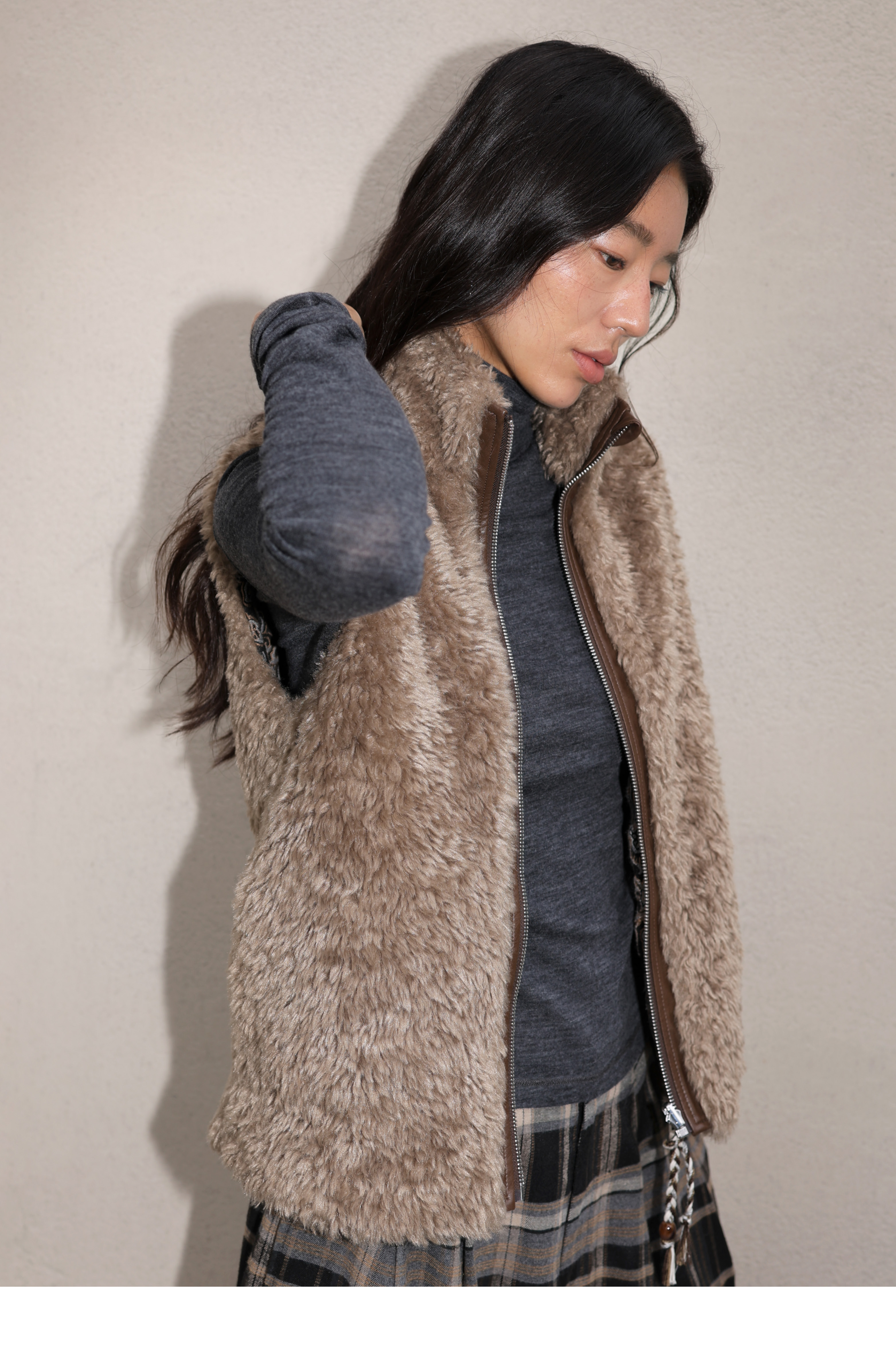 素舶 环保皮草保暖毛毛马甲百搭立领无袖坎肩短外套
