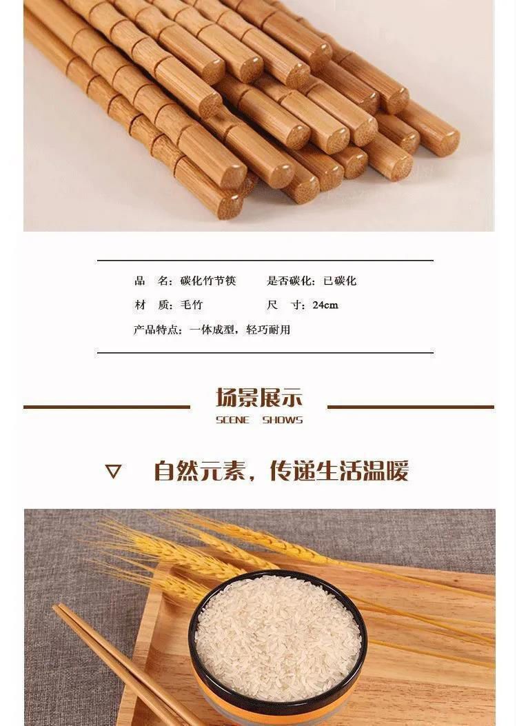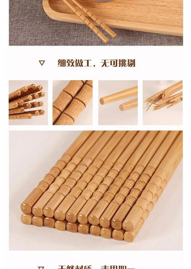 30双 无漆无蜡防霉天然竹筷子家用碳化防滑套装中式餐具酒店饭店批发