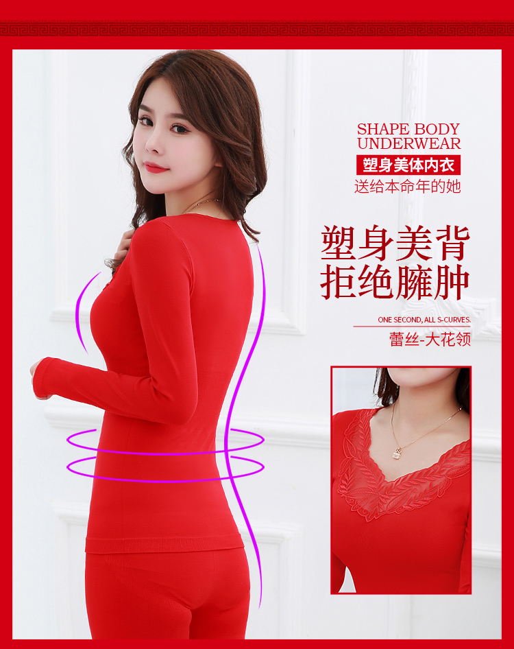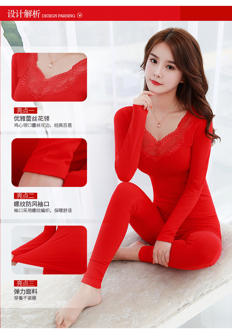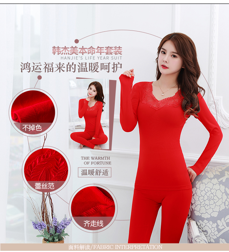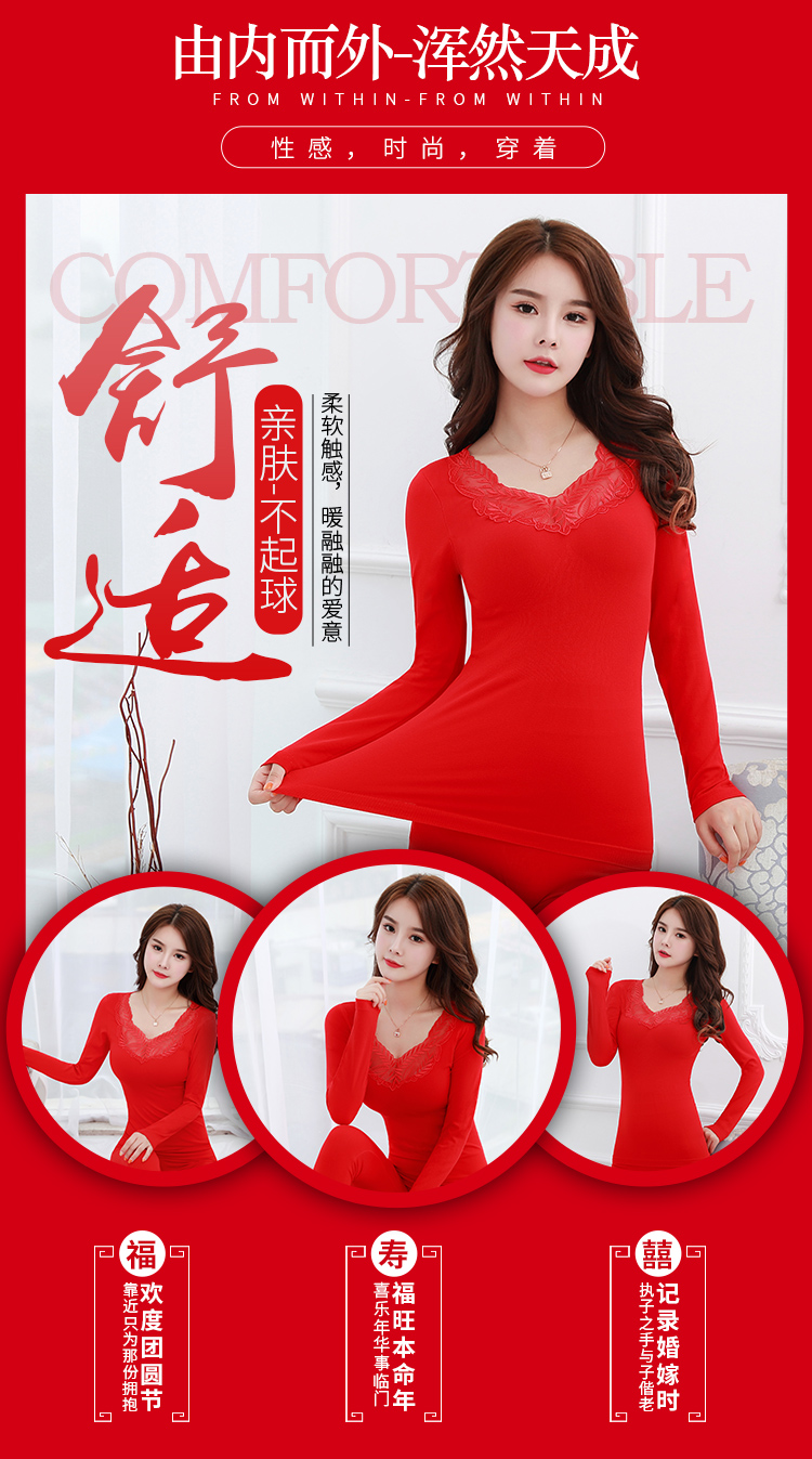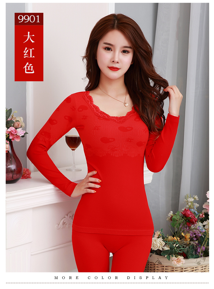 【套装+内裤+袜子】本命年大红色结婚女薄款保暖内衣套装