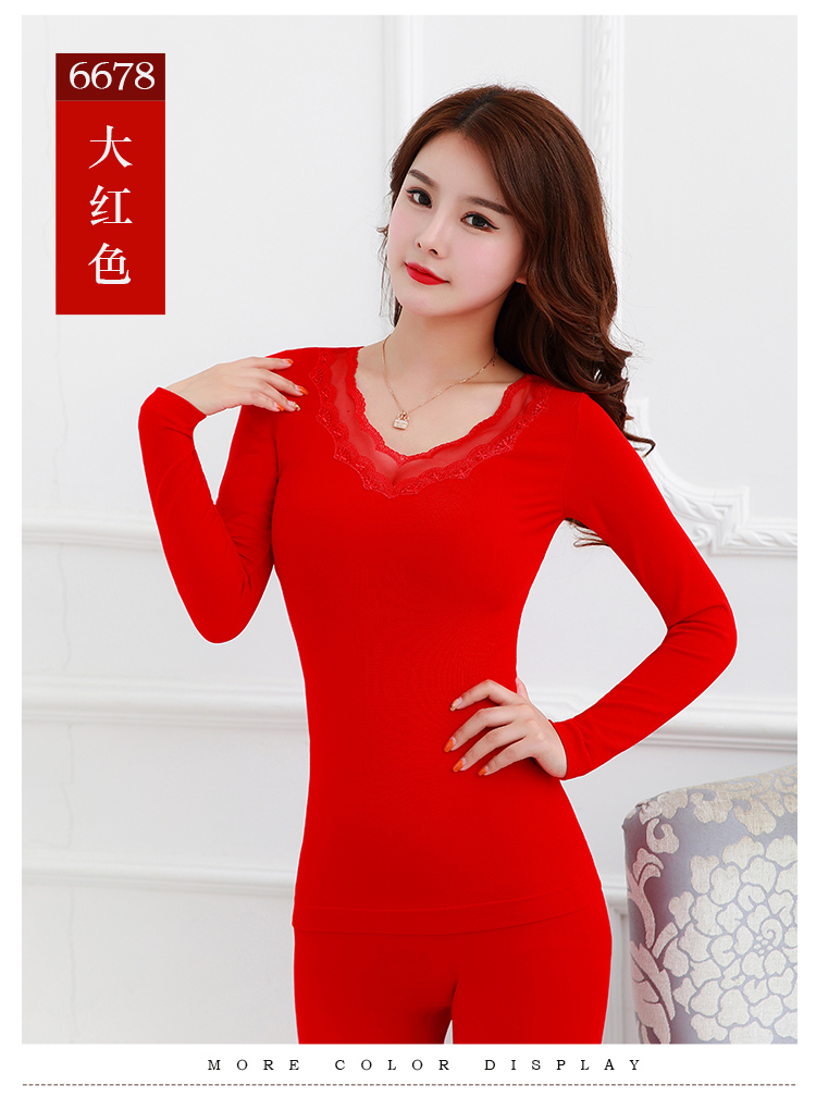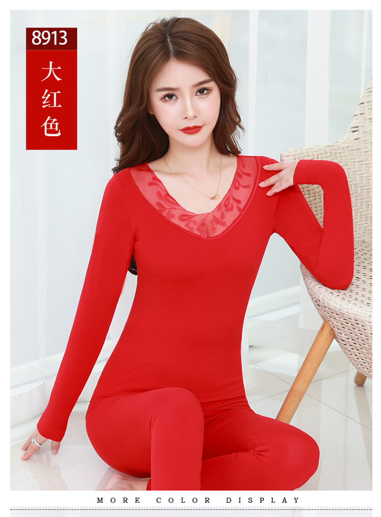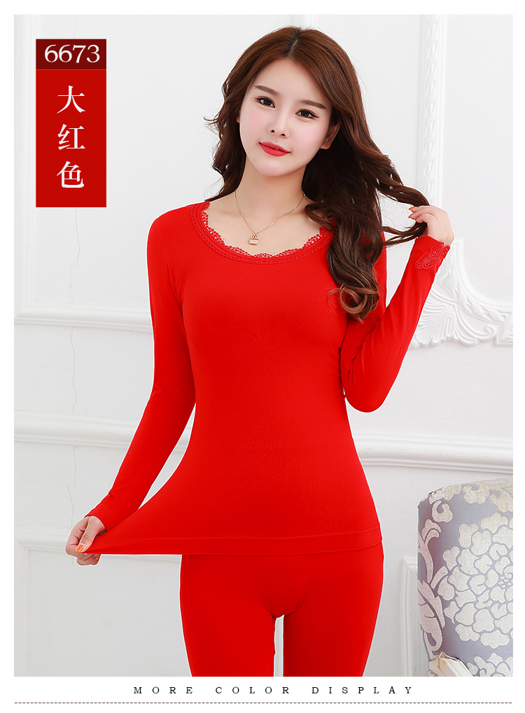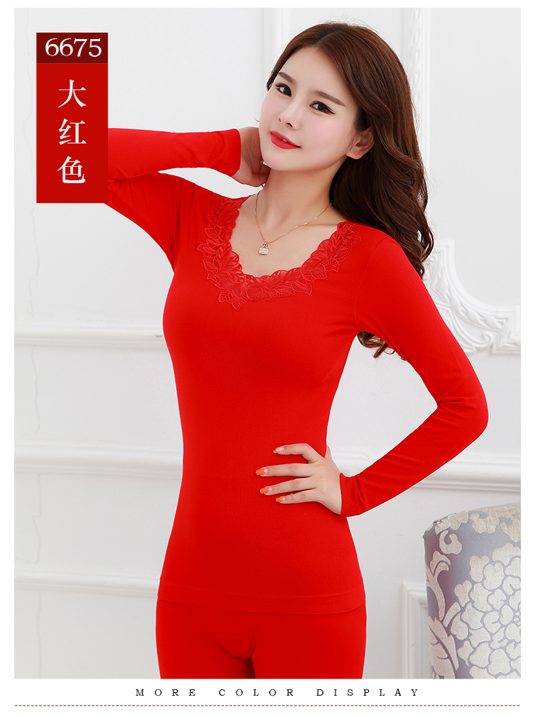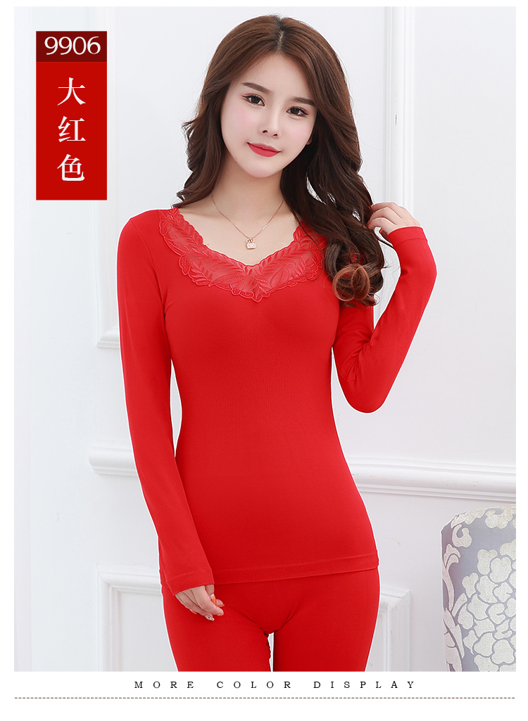 【套装+内裤+袜子】本命年大红色结婚女薄款保暖内衣套装