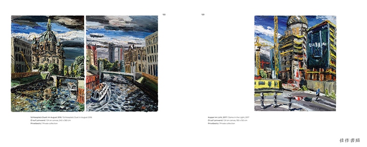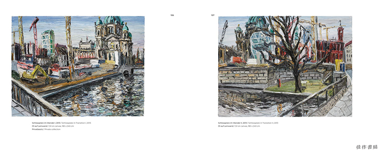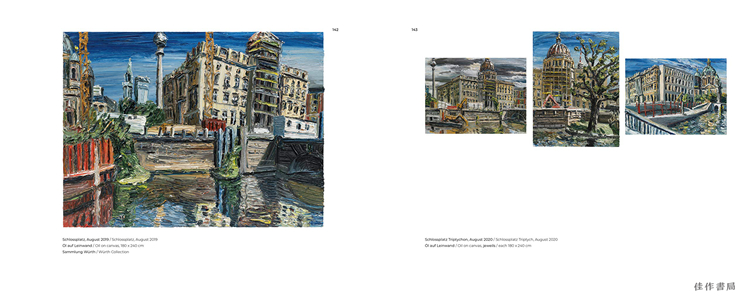 The once and future home to Berlin’s City Palace, the Schlossplatz is an ever-changing space that reflects its city’s dynamic history. Published to coincide with the completion of the Humboldt Forum, this volume collects Christopher Lehmpfuhl's atmospheric panoramic paintings of Berlin’s historic center as it undergoes dramatic change. Lehmpfuhl documented the vast construction site over a decade—returning again and again to the same handful of sites in every season. His magnificent landscapes illuminate the lifecycle of a metropolis. Lehmpfuhl painted each work on site, in every kind of weather, and the paintings’ thick and swirling strokes reflect the energy of a city in constant flux. Behind-the-scenes photos of Lehmpfuhl at work demonstrate his signature technique—applying large amounts of paint by hand directly onto the canvas—and reveal the sheer physicality of his effort. The result is a love letter to Berlin, and a unique artistic glimpse into the laborious process of reimagining and rebuilding a city.