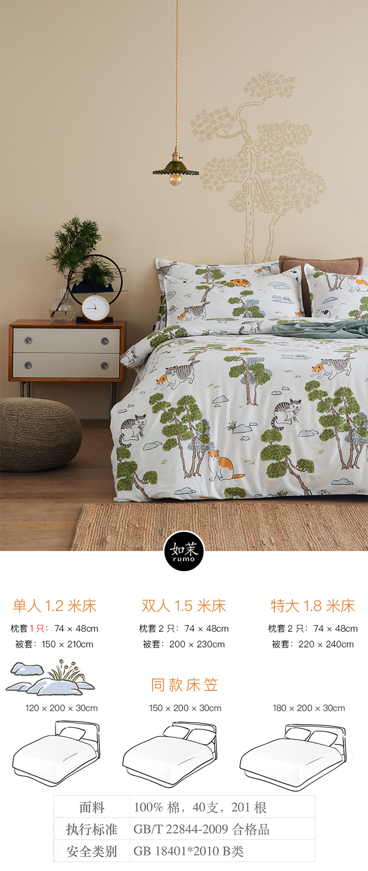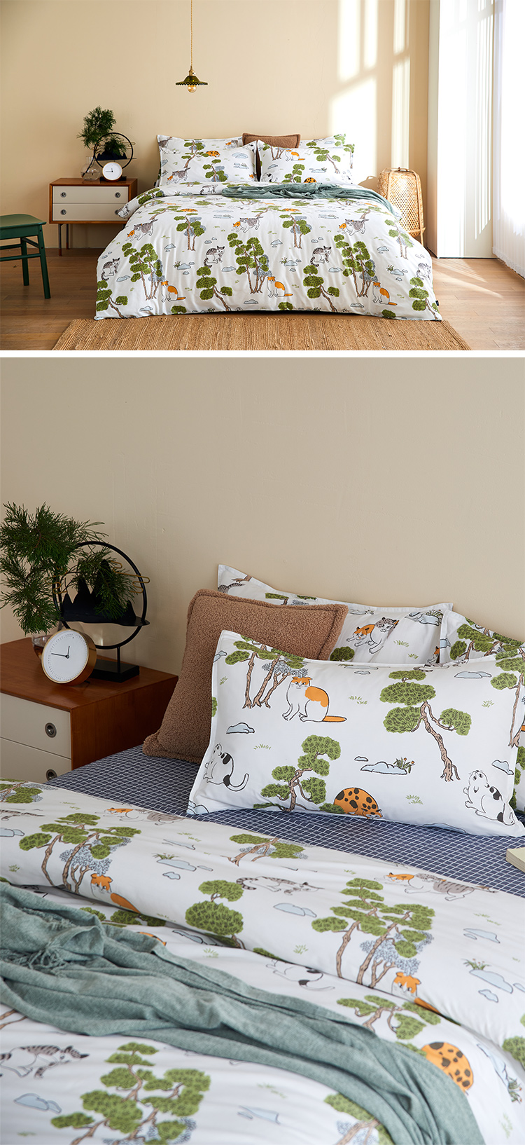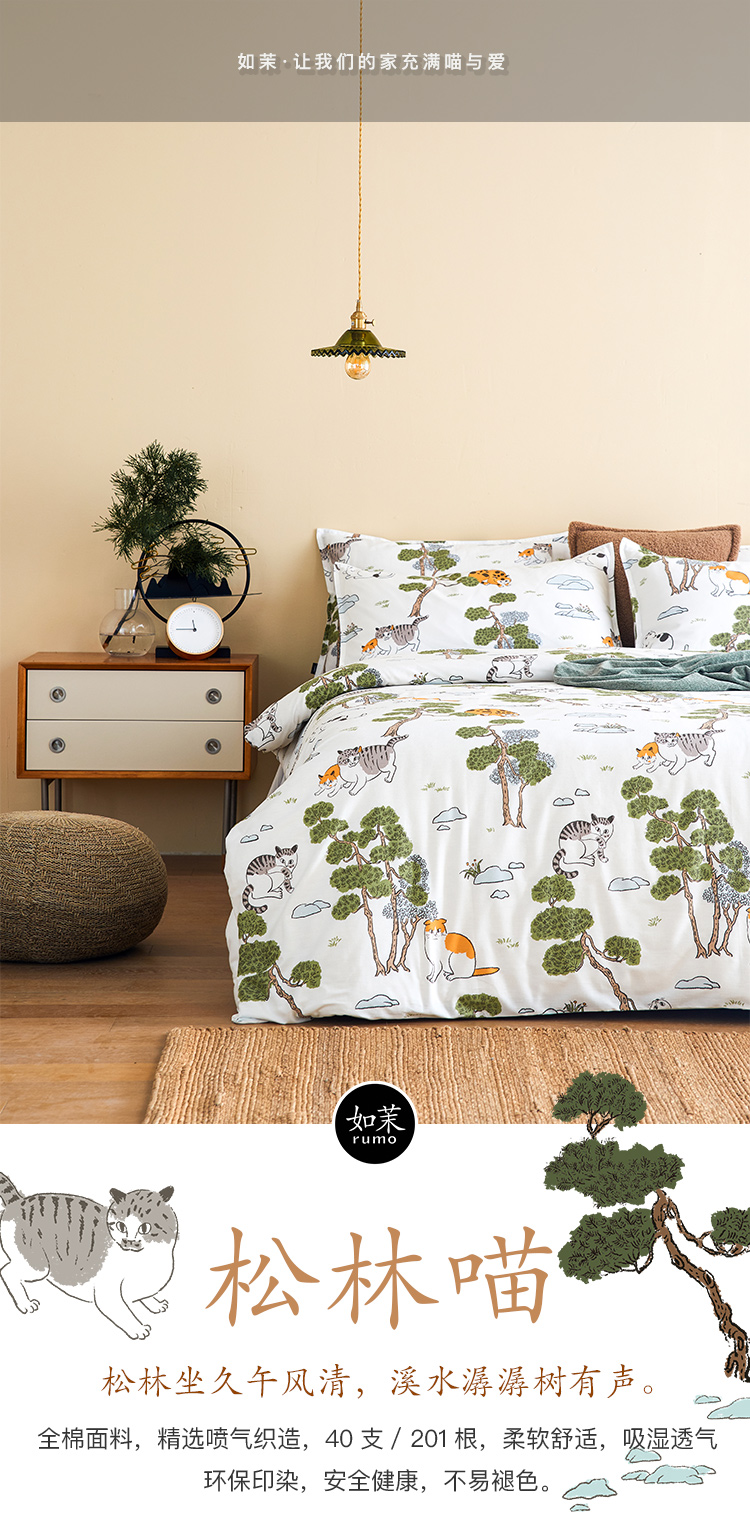 【幸运土猫】松林喵猫如茉全棉纯棉猫三四件套件柔软被套原创设计