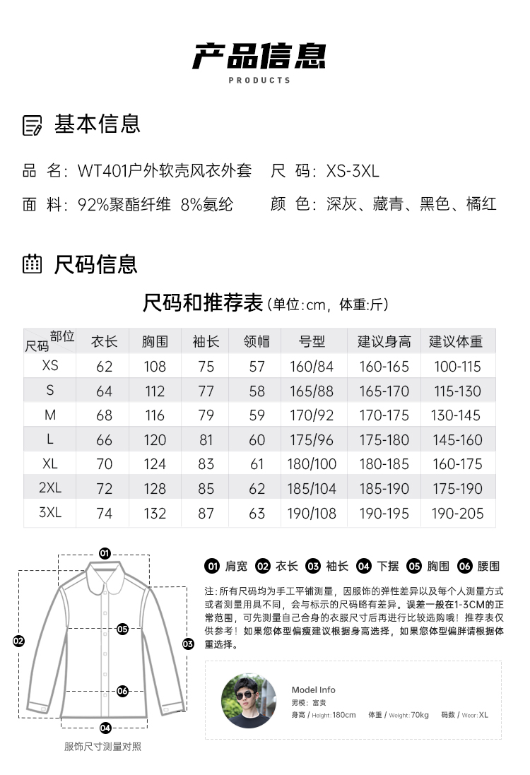 【户外软壳风衣外套】户外防风保暖夹克外套 男女同款连帽宽松外套 WT401