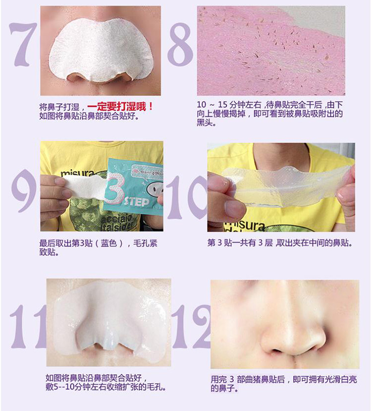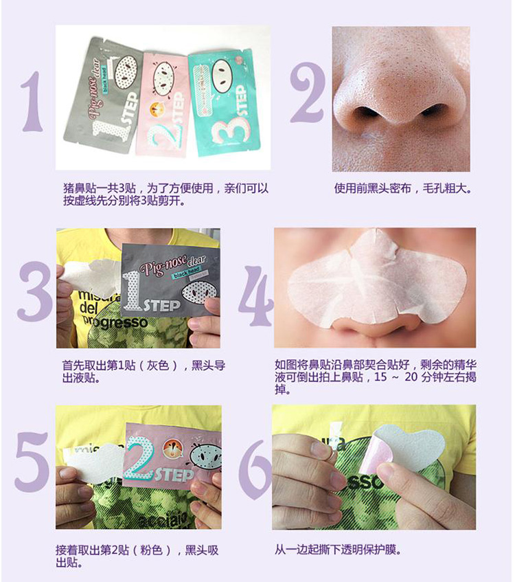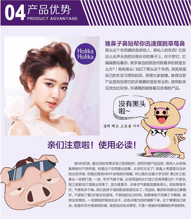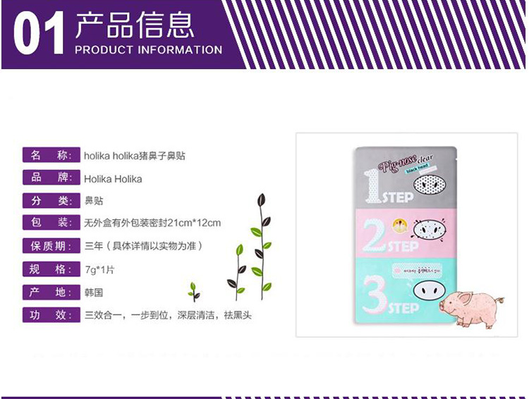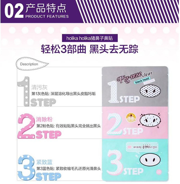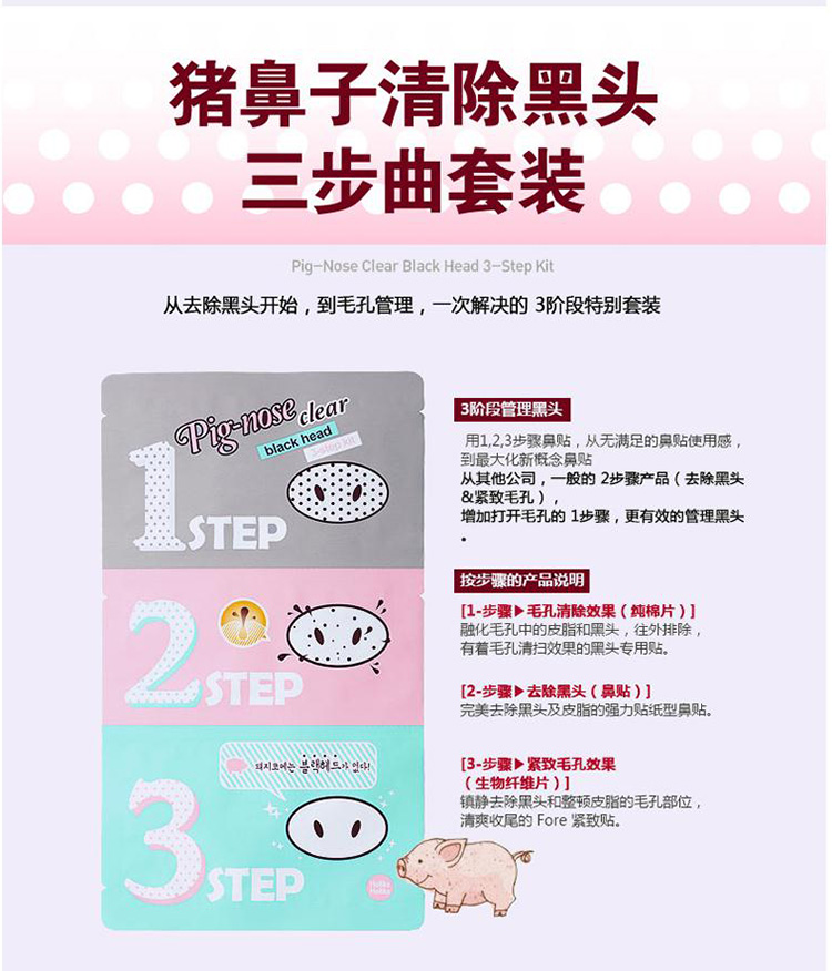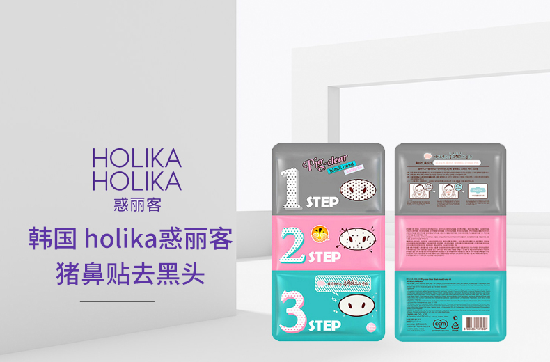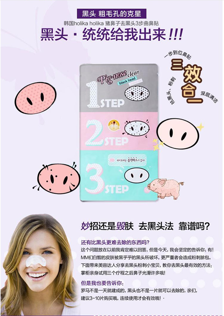 【包邮!一般贸易中文标】韩国惑丽客holika猪鼻贴去黑头收缩毛孔三步曲3个/片