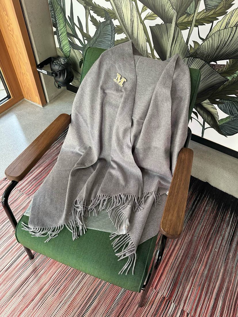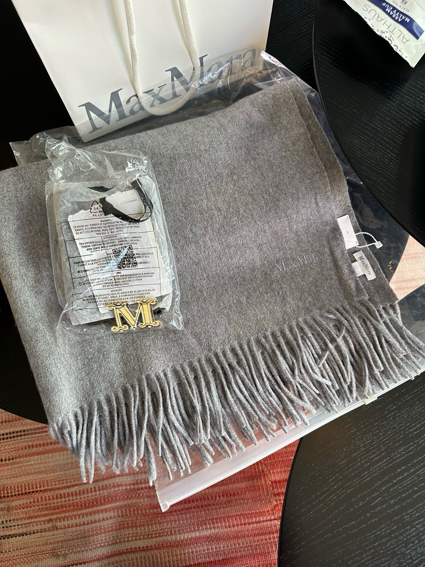 国内现货MaxMara纯羊绒男女皆可的贼大气质百搭披肩围巾专柜在售款8500元!现在只要2599元配胸针.配购物袋