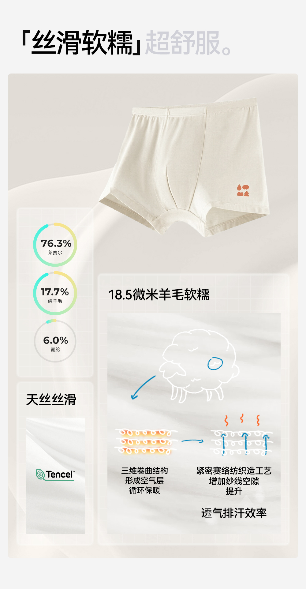 【儿童天丝羊毛内裤】森林棠新款舒弹亲肤男童女童平角短裤安全裤2条装23761435