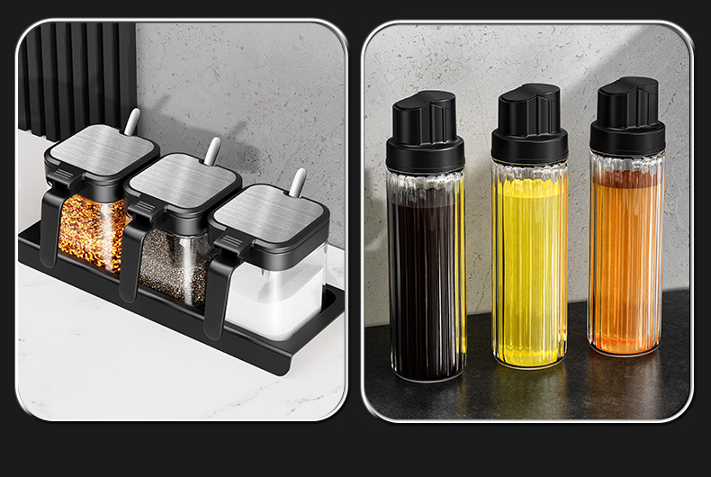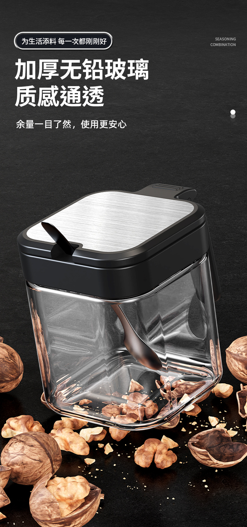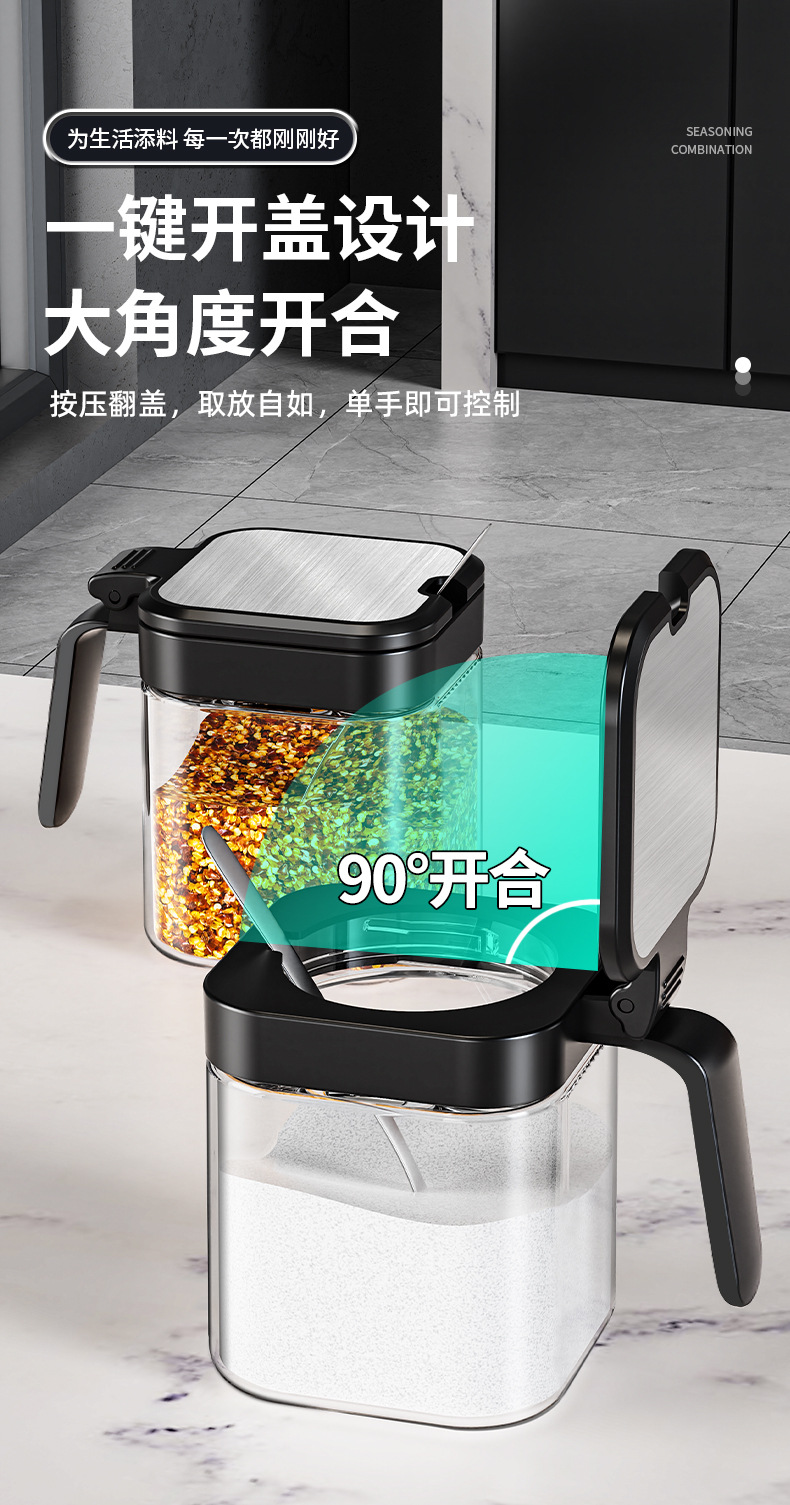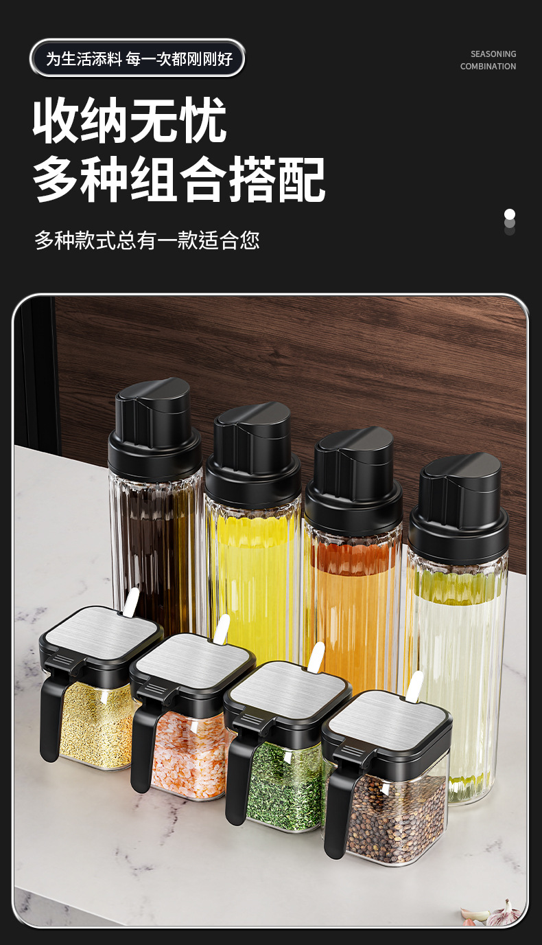 【厨房刚需❗️密封调料罐】加厚玻璃耐腐蚀,密封盖防潮,盐糖调料分类收纳,调味料瓶组合调味罐子收纳盒密封L