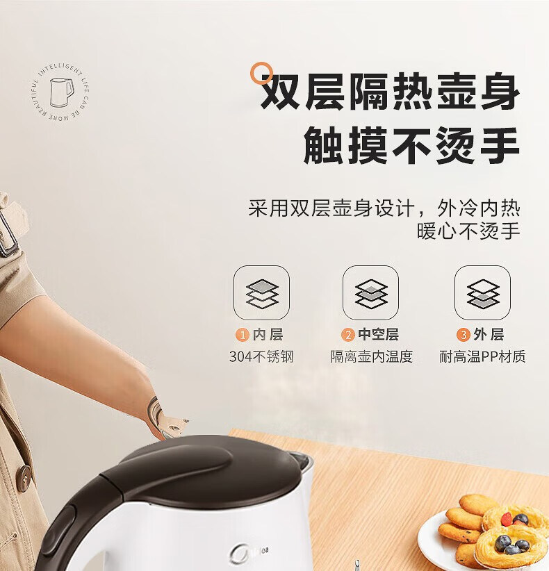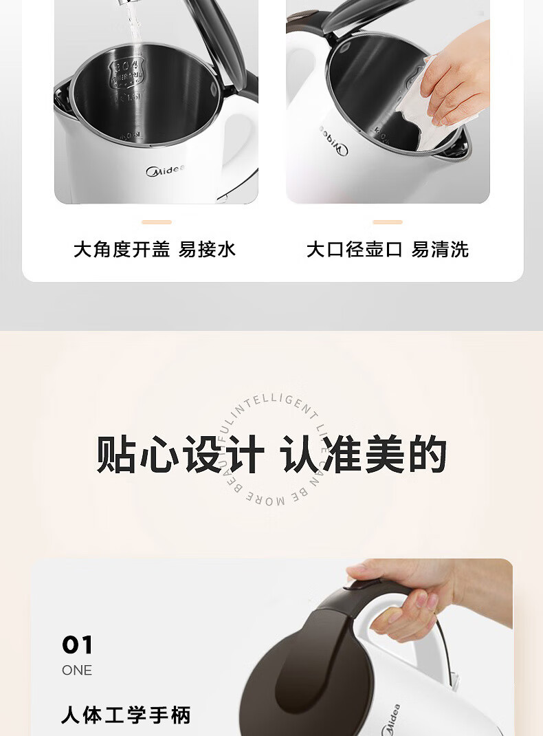 Midea/美的 MK-TM1502b家用防烫自动断电304不锈钢烧水壶