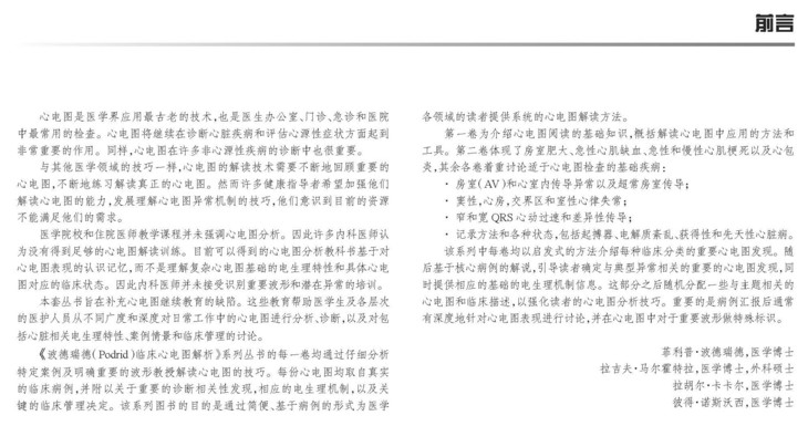 心电图作为医学界应用最古老的技术,也是医生办公室、门诊、急诊和医院中最常用的检查,在诊断心脏疾病和评估心脏源性症状方面起到非常重要的作用,在许多非心脏源性疾病的诊断中也很重要。目前可以得到的心电图分析教科书基于对心电图表现的认识记忆,而不是理解复杂心电图基础的电生理特性和具体心电图对应的临床状态。因此内科医师并未接受识别重要波形和潜在异常的培训。本书可以帮助医学生及各层次的医护人员从不同广度和深度对日常工作中心电图进行分析,诊断以及包括心脏相关电生理特性,案例情景和临床管理的讨论,它通过仔细分析特定案例及明确重要的波形教授解读心电图技巧。每份心电图均取自真实的临床病例,并附以关于重要的诊断相关性发现,相应的电生理机制以及关键的临床管理决定。该系列图书的目的是为医学各领域读者通过简便,基于病例的形式提供系统的心电图解读方法。